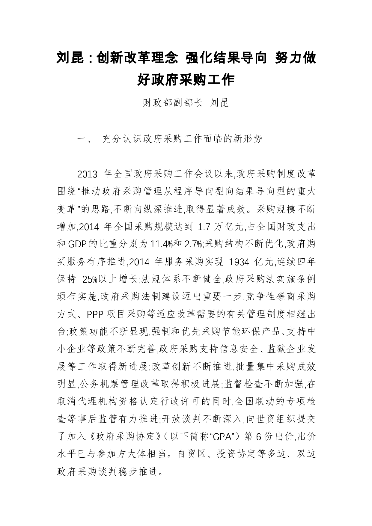 标题:刘昆:创新改革理念强化结果导向努力做好政府采购工作