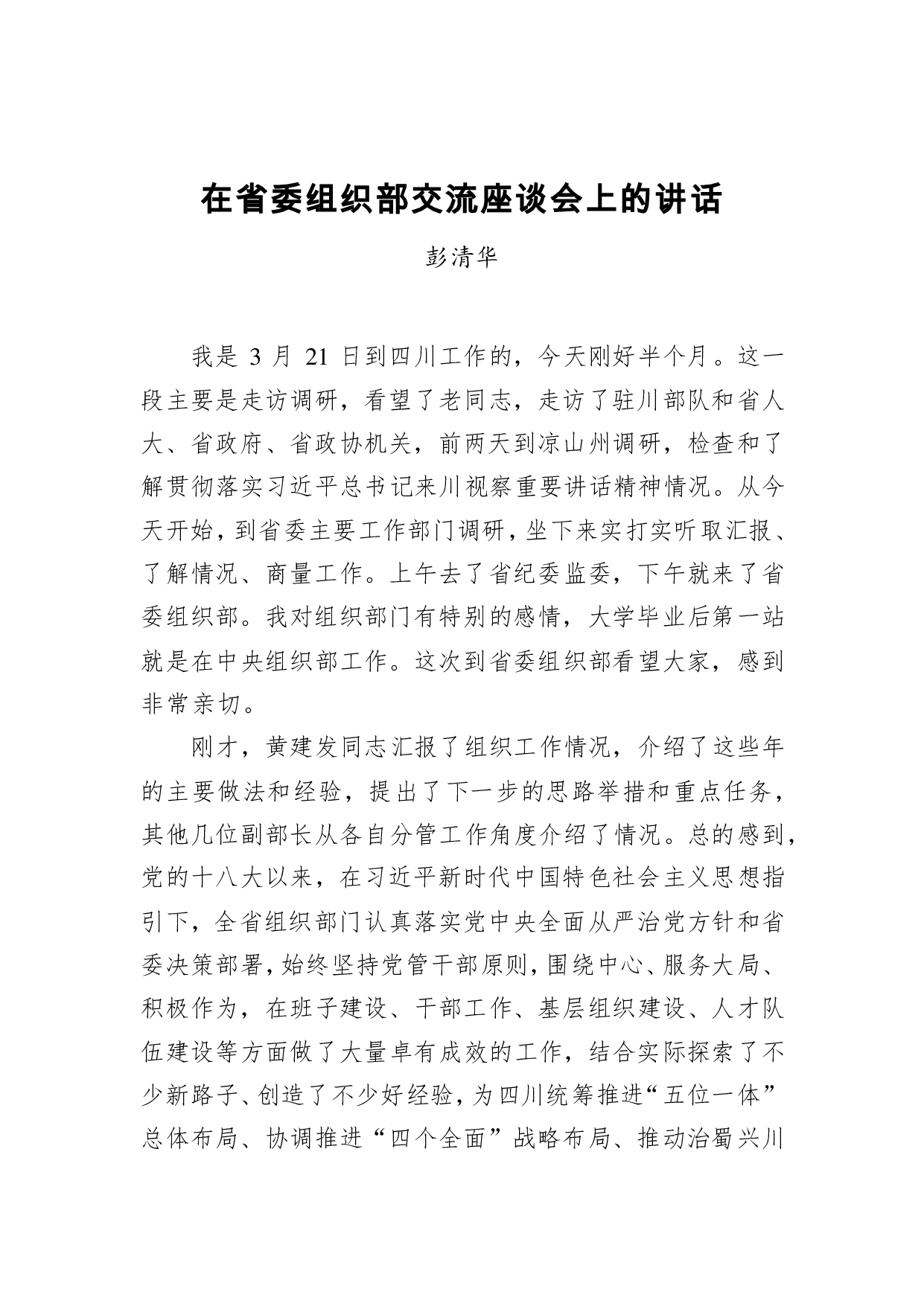标题:彭清华:在省委组织部交流座谈会上的讲话