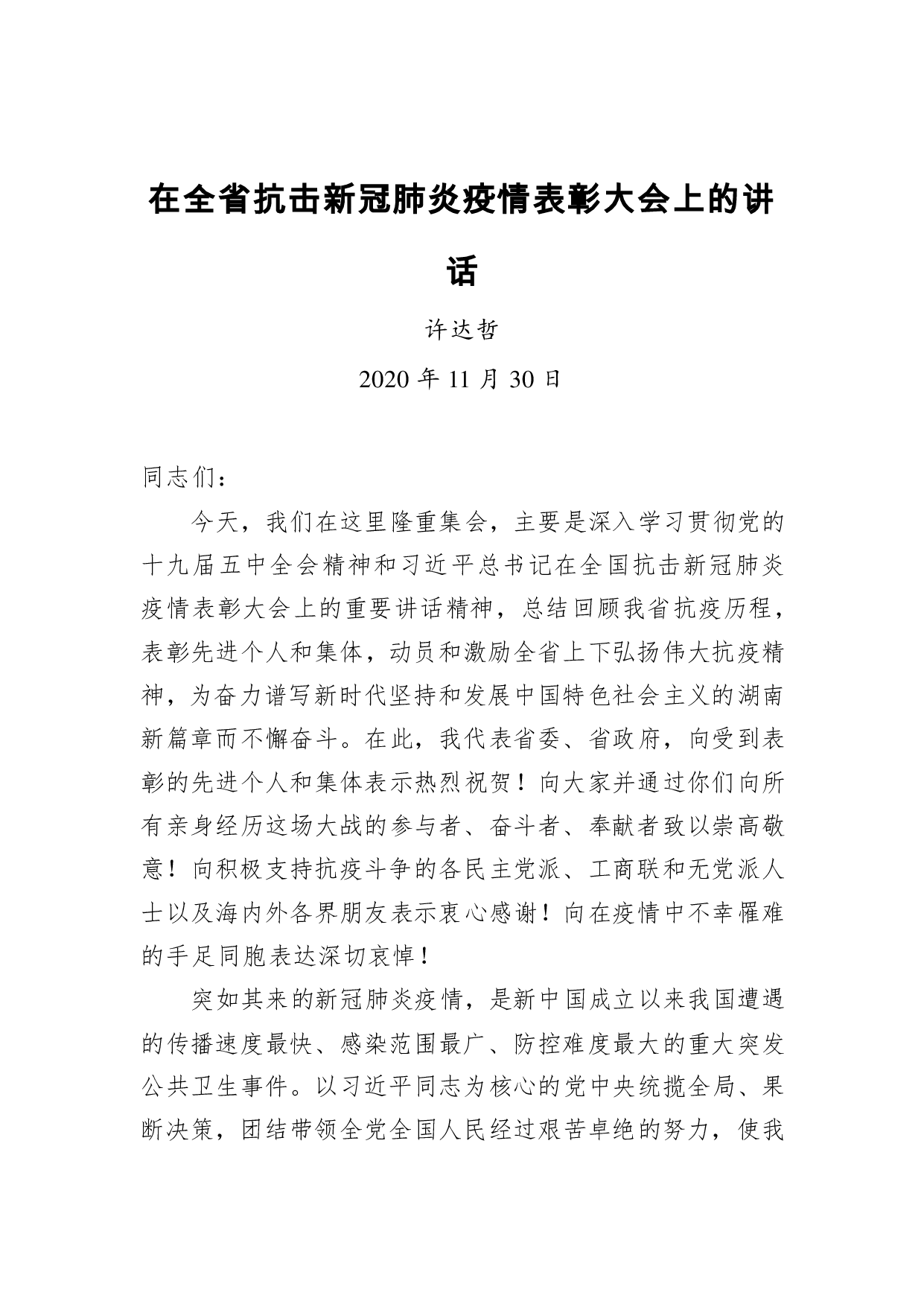 标题:许达哲:在全省抗击新冠肺炎疫情表彰大会上的讲话(20201130)