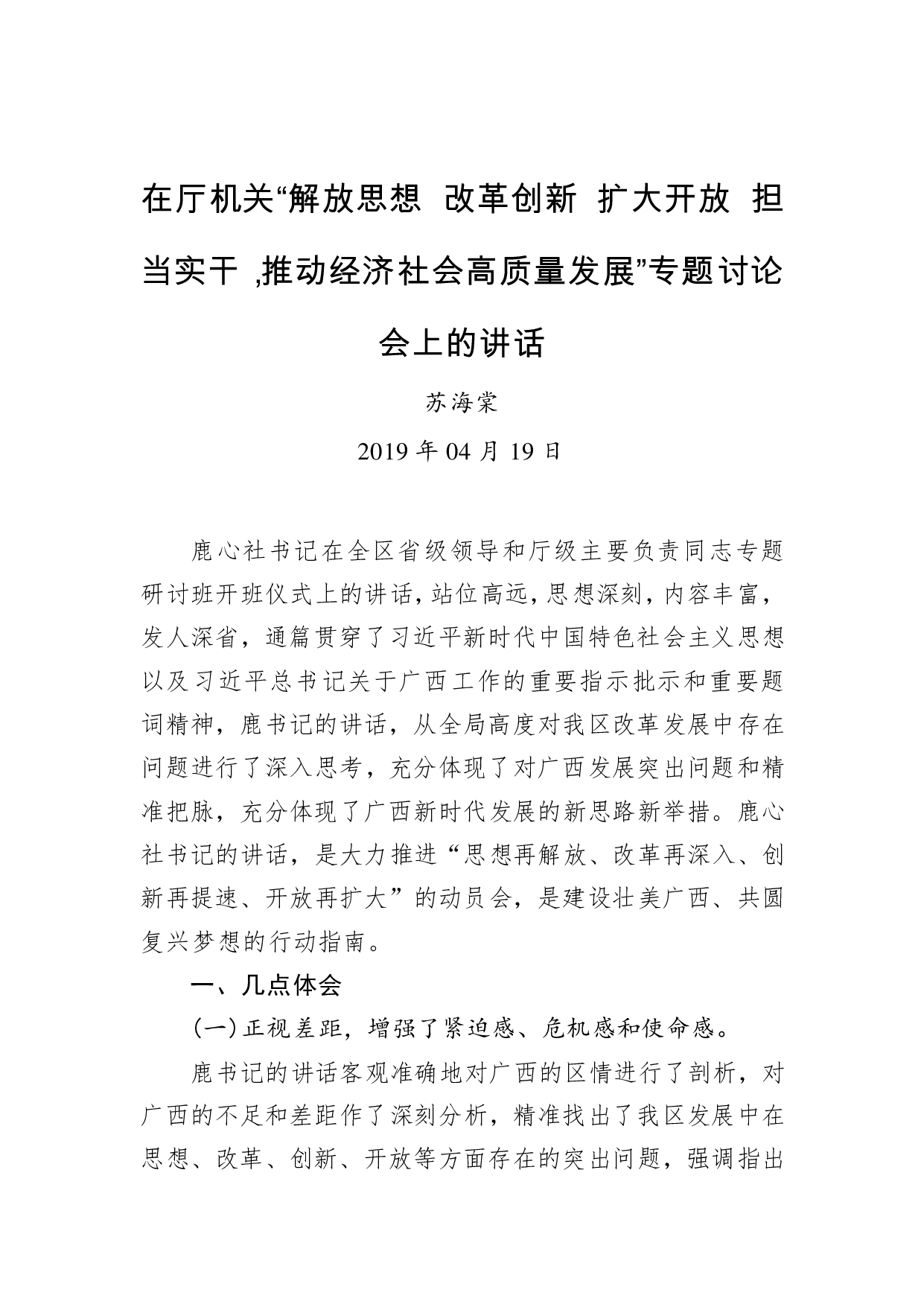 标题:苏海棠:在厅机关“解放思想 改革创新 扩大开放 担当实干,推动经济社会高质量发展”专题