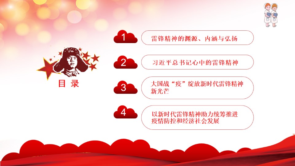 标题:大国战疫绽放新时代雷锋精神新光芒PPT