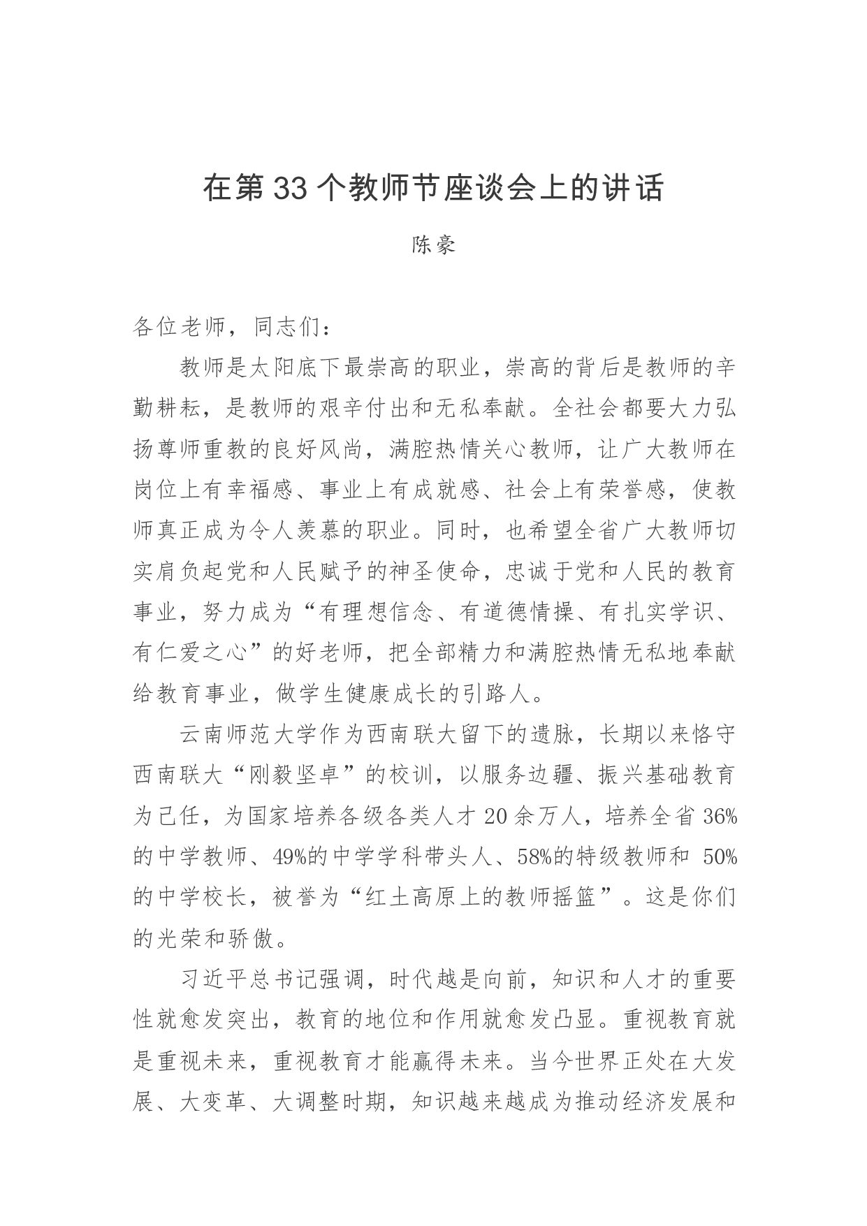 标题:陈豪:在第33个教师节座谈会上的讲话
