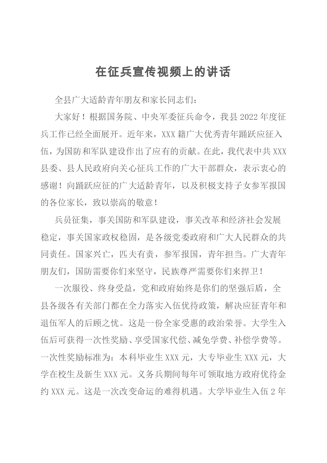 标题:在征兵宣传视频上的讲话