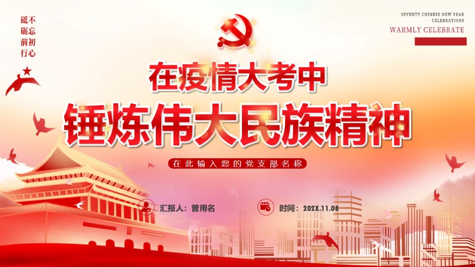标题:在疫情大考中锤炼伟大民族精神PPT课件(20200909)