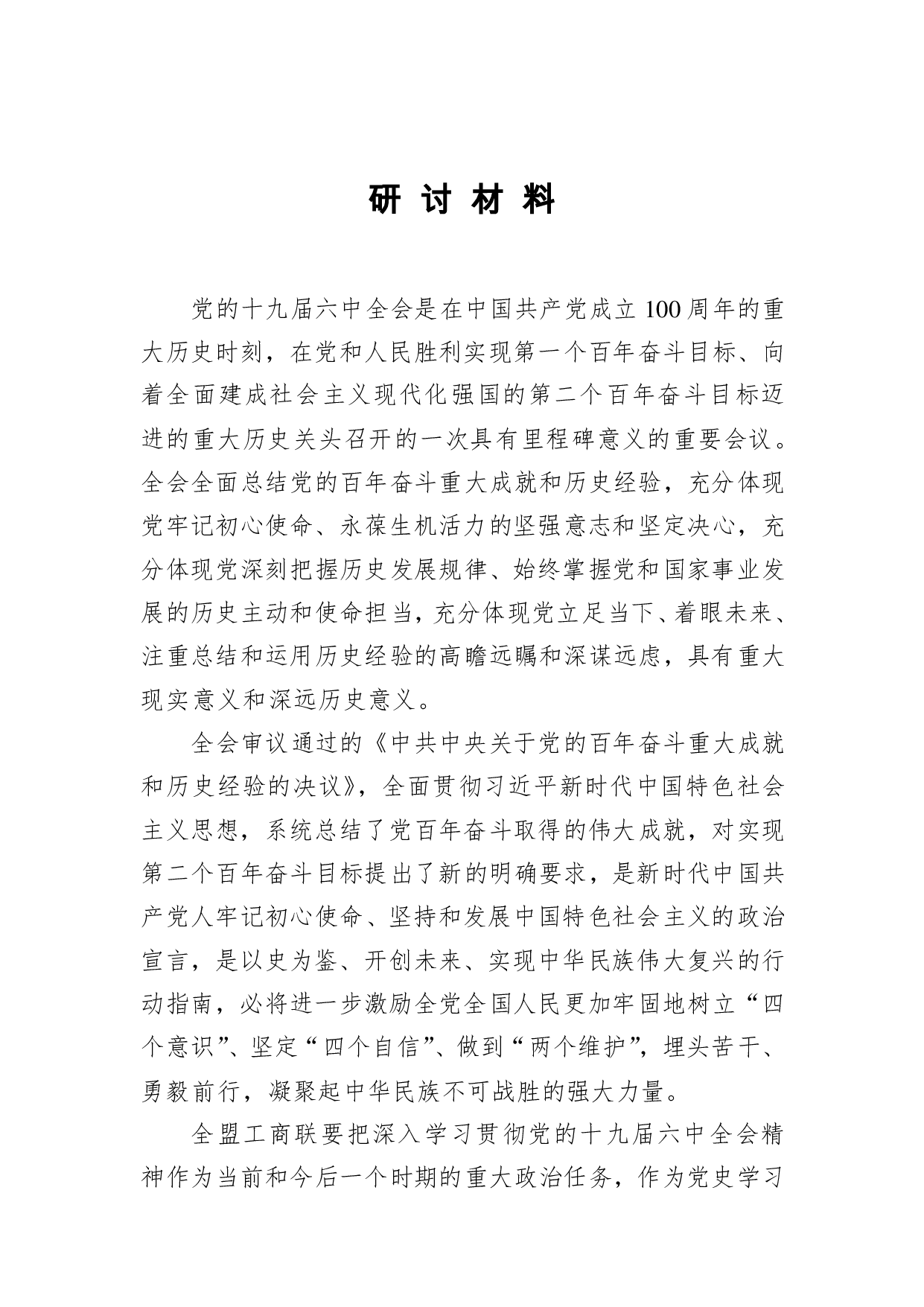 标题:十九届六中全会研讨材料5