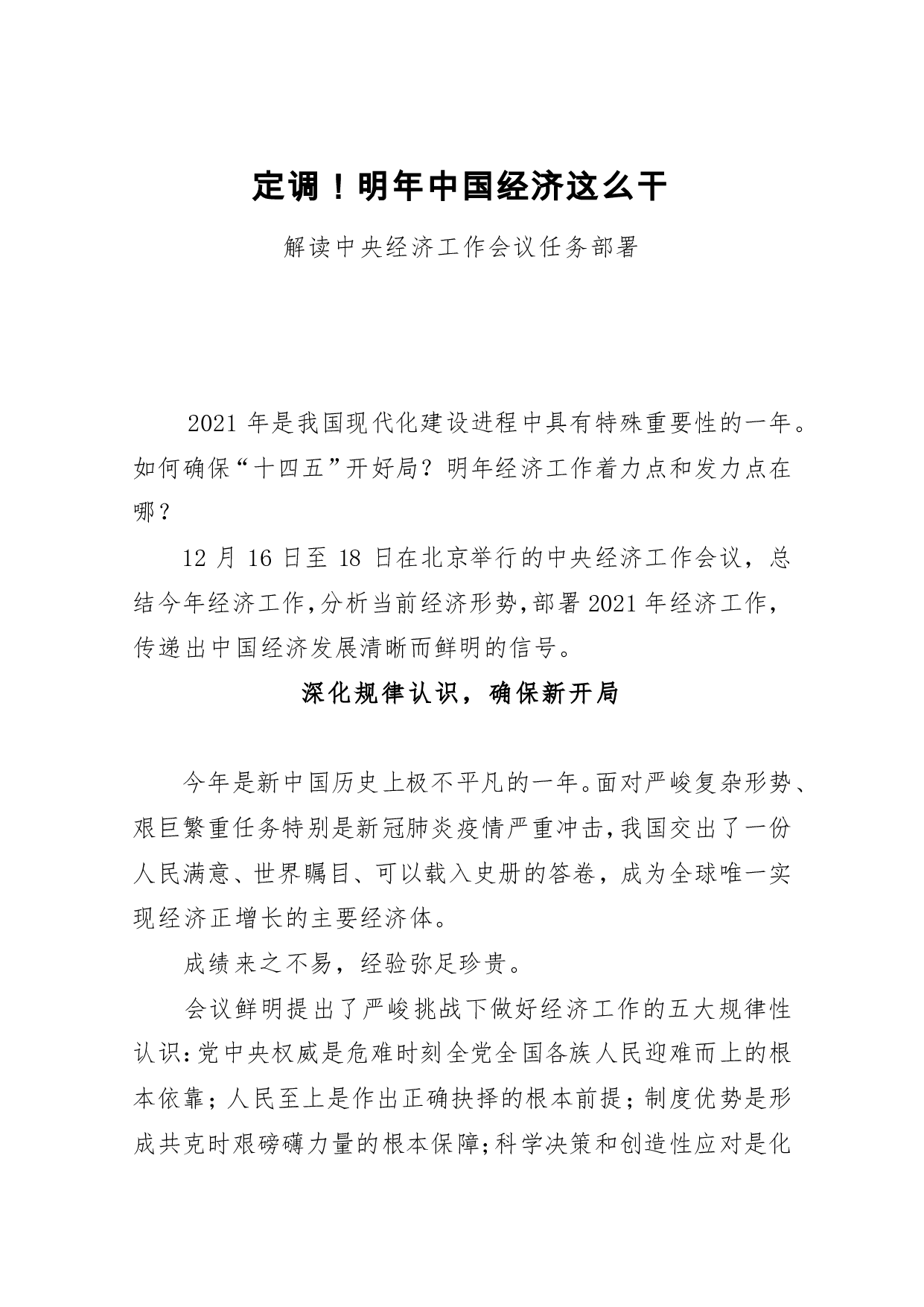 标题:【解读】定调!明年中国经济这么干