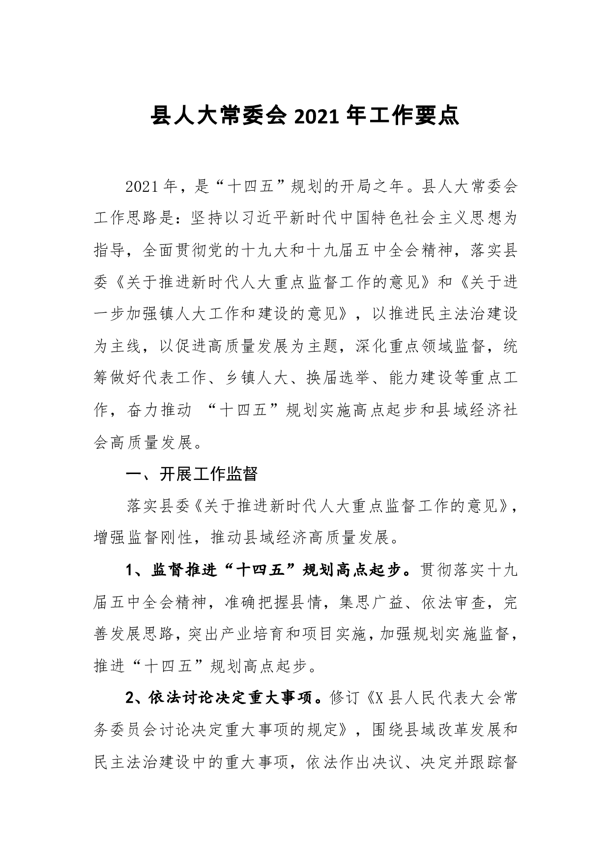 标题:县人大常委会2021年工作要点