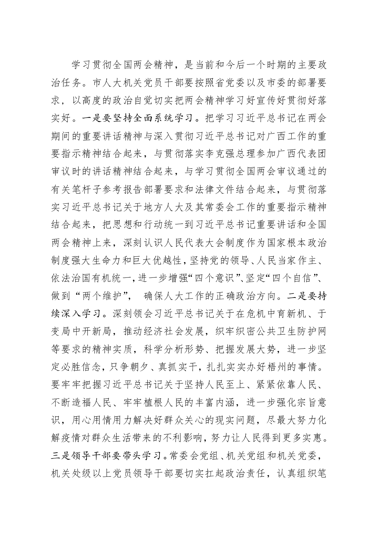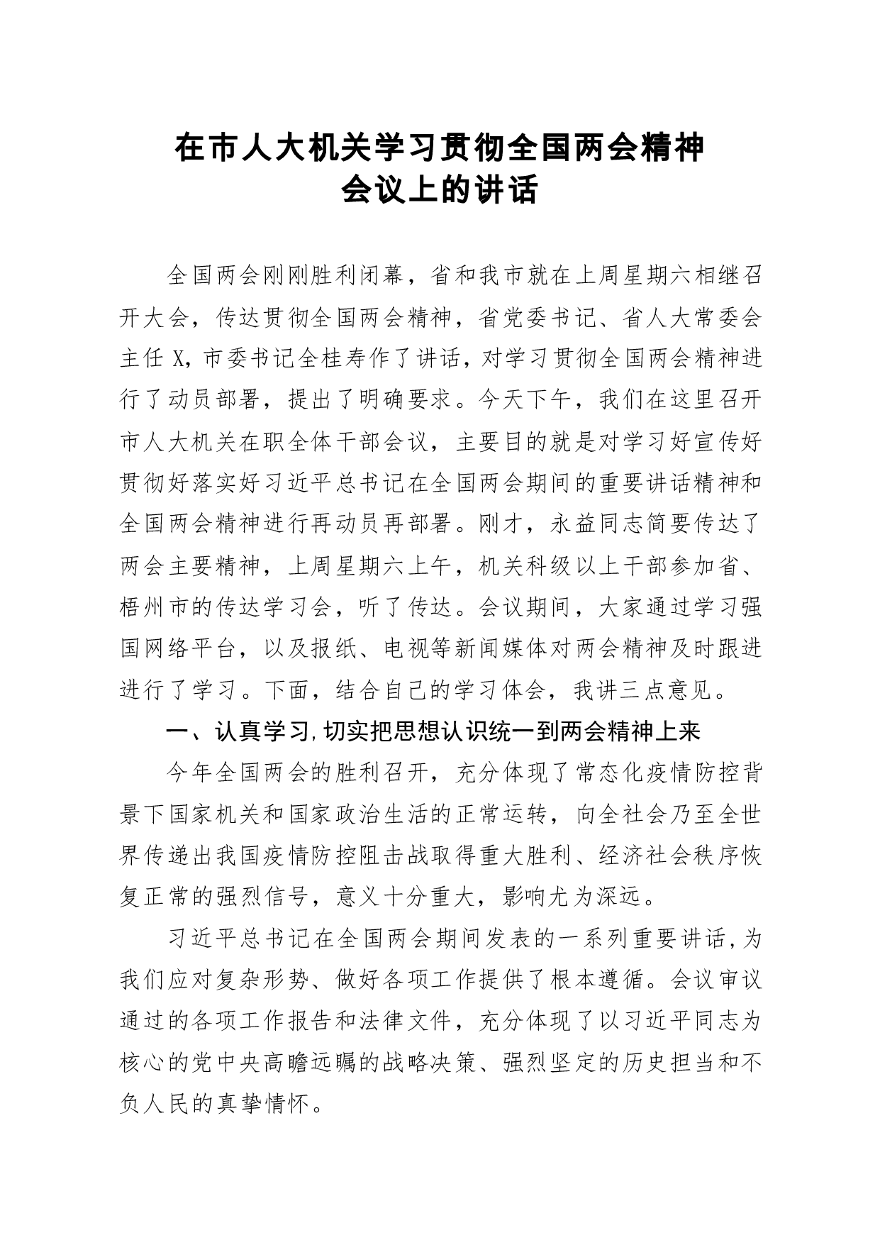 标题:笔友分享在市人大机关学习贯彻全国两会精神会议上的讲话