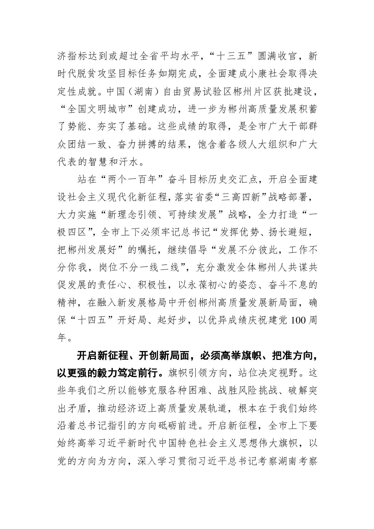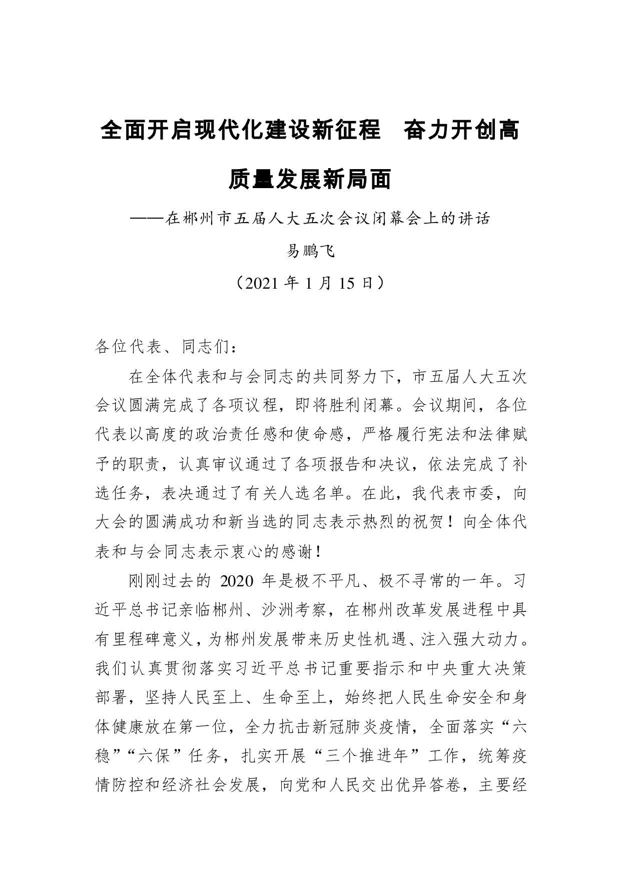 标题:易鹏飞:全面开启现代化建设新征程 奋力开创高质量发展新局面——在郴州市五届人大五次会