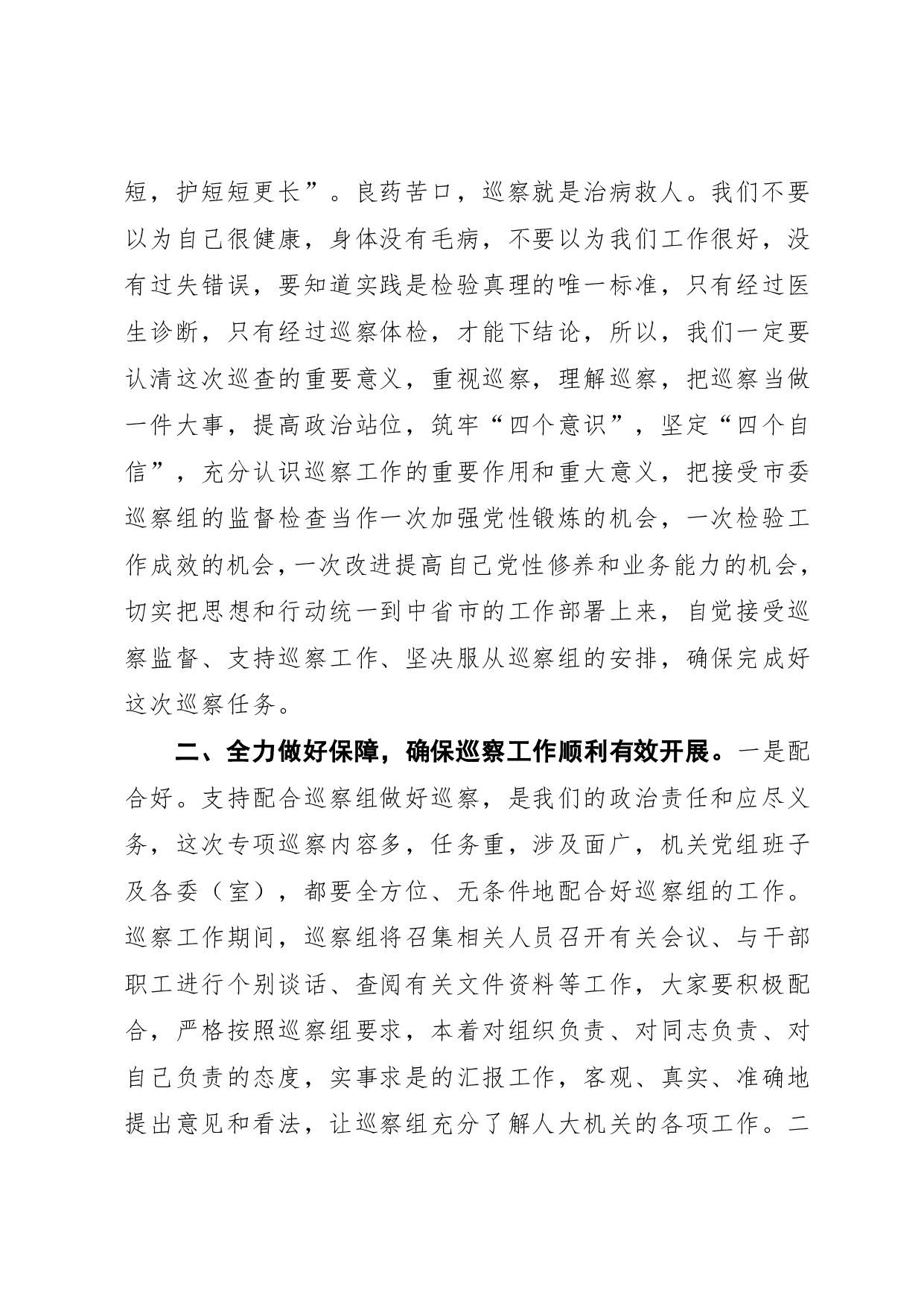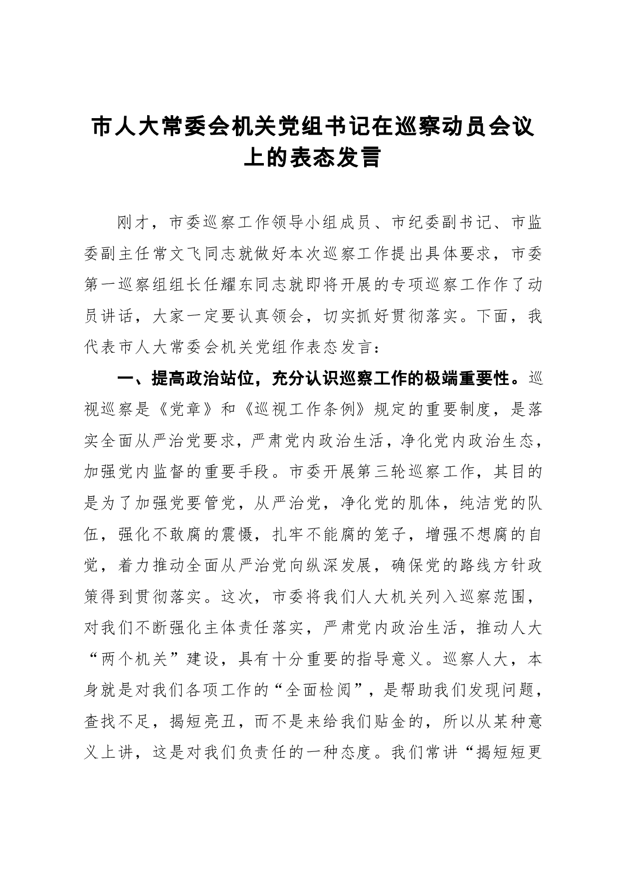 标题:市人大常委会机关党组书记在巡察动员会议上的表态发言
