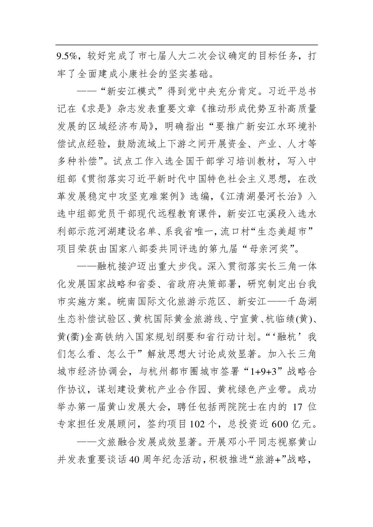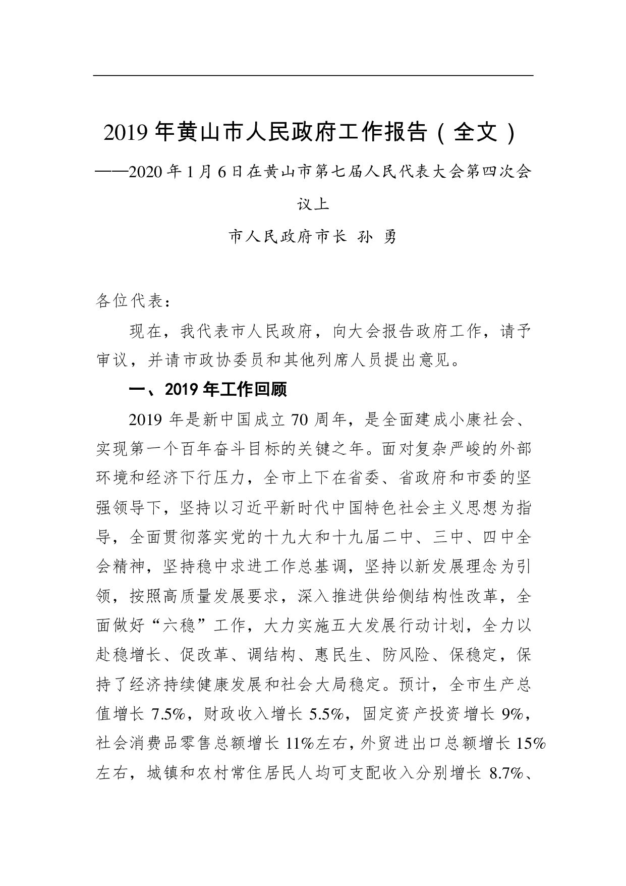 标题:2019年黄山市人民政府工作报告(全文)
