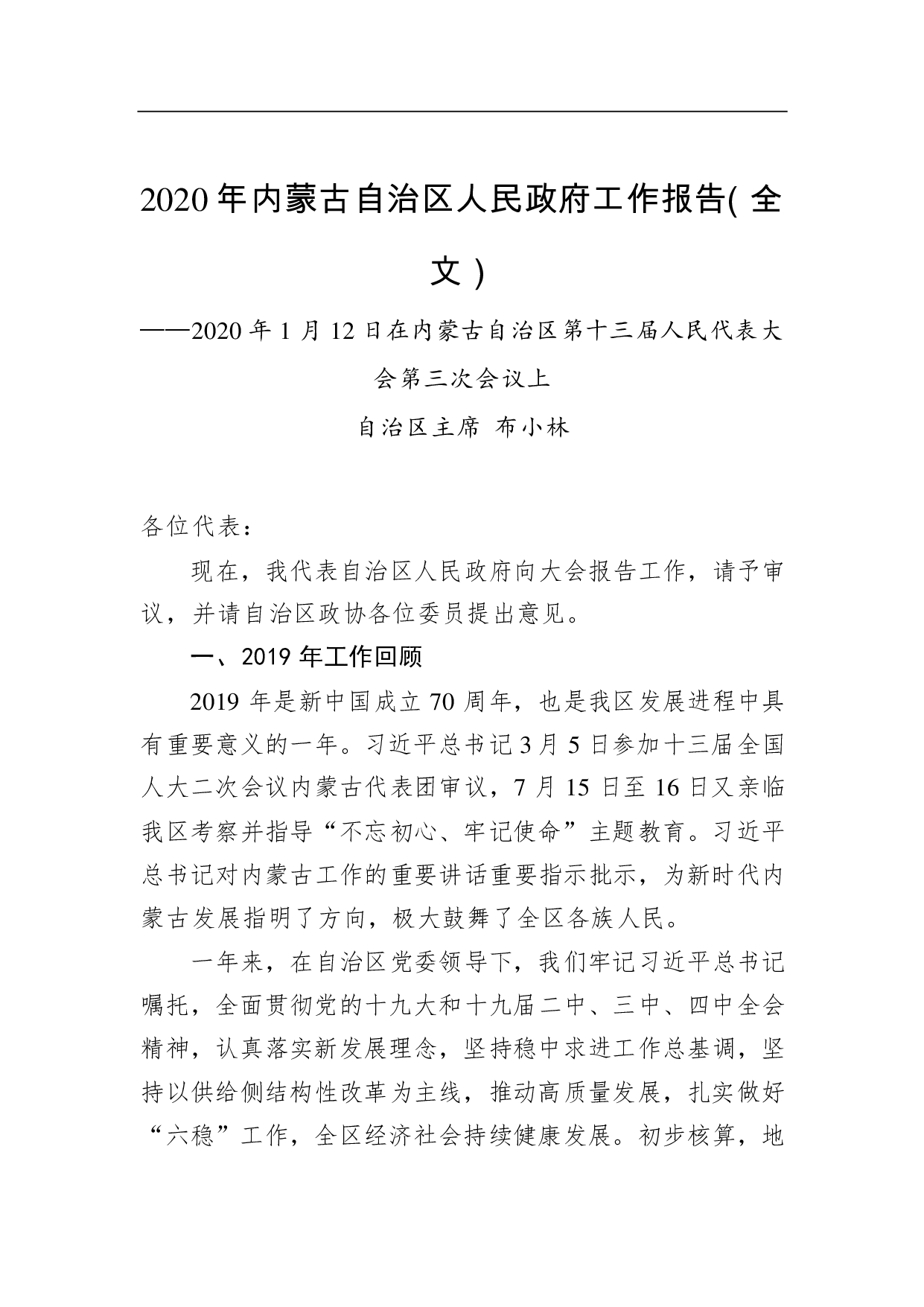 标题:2020年内蒙古自治区人民政府工作报告(全文)