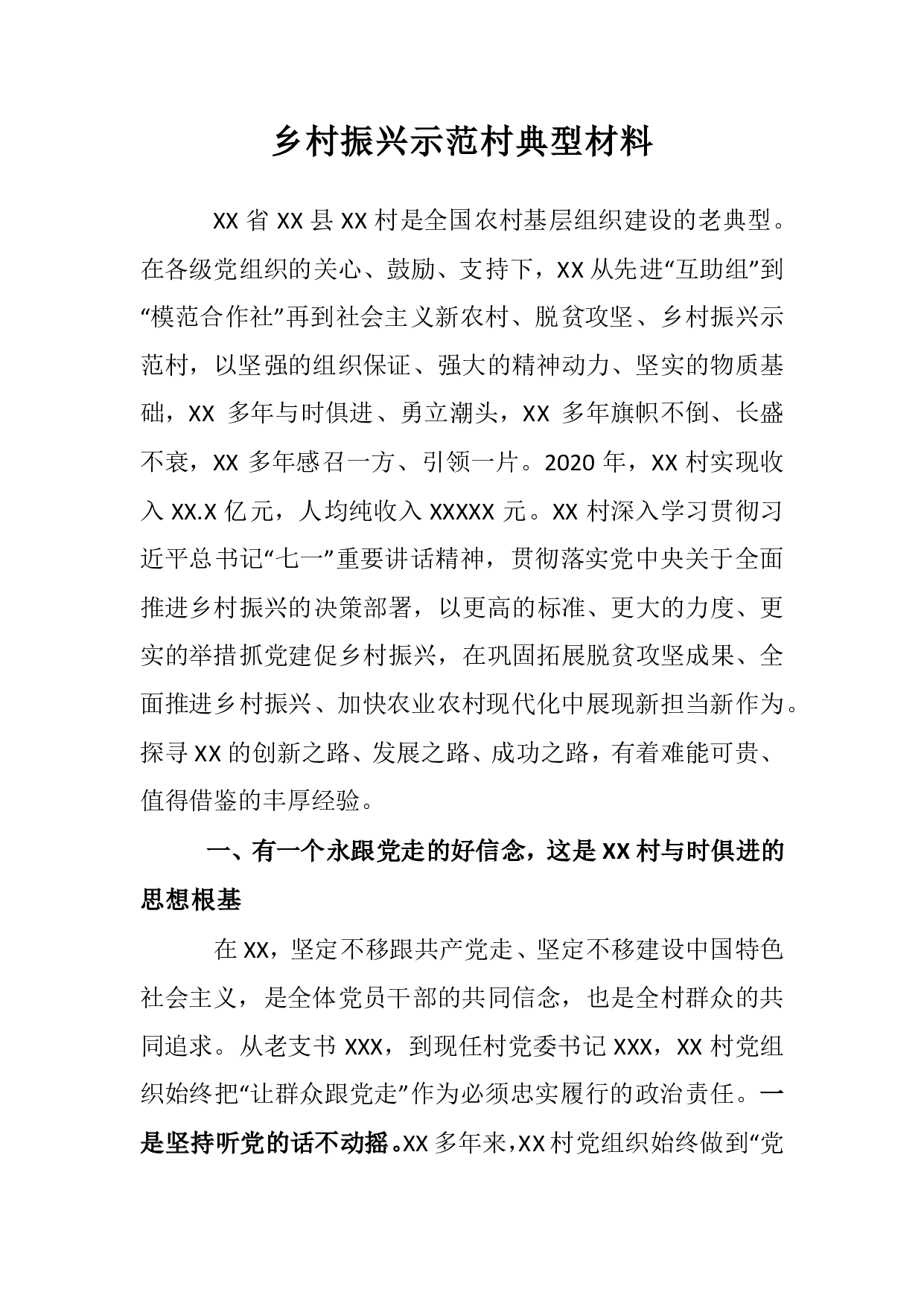 标题:乡村振兴示范村典型材料