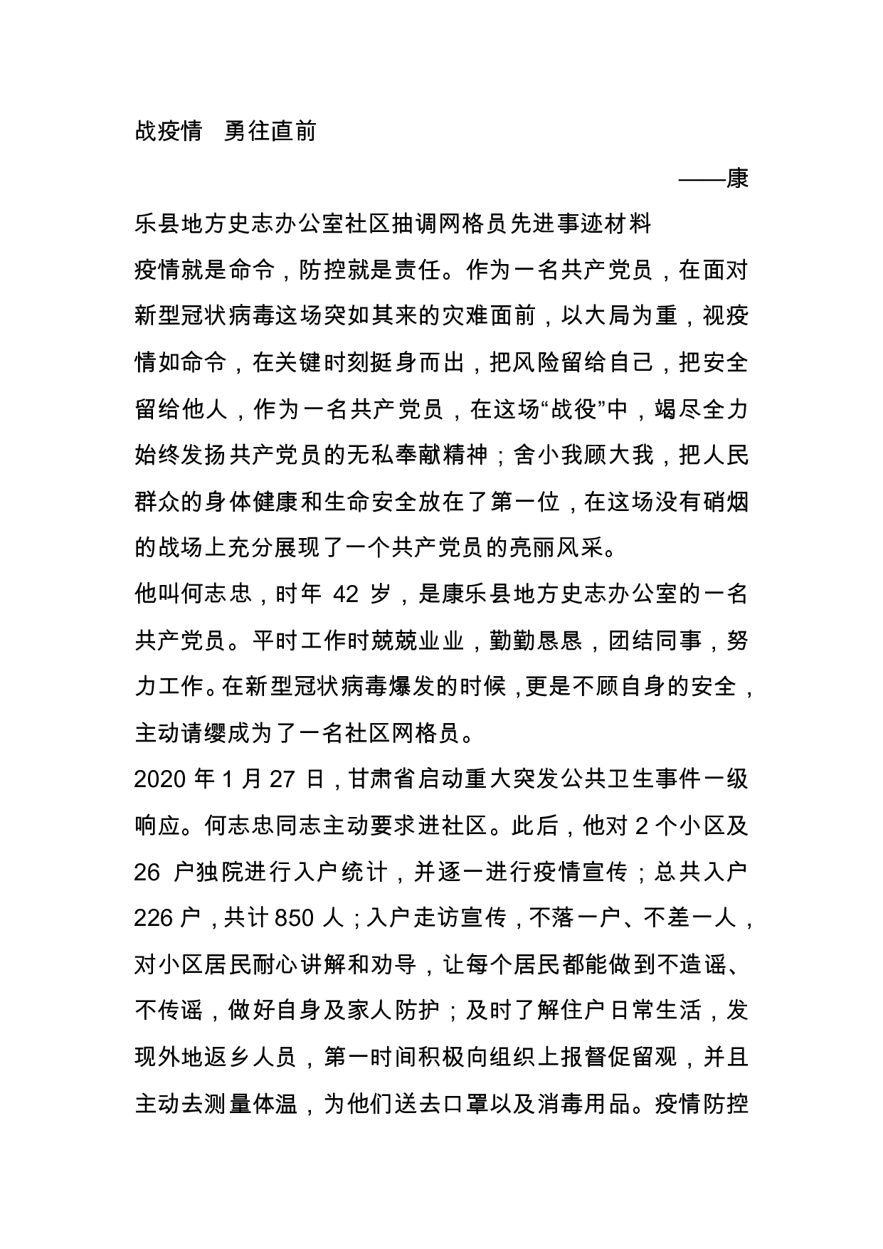 标题:县地方史志办公室社区抽调网格员先进事迹材料