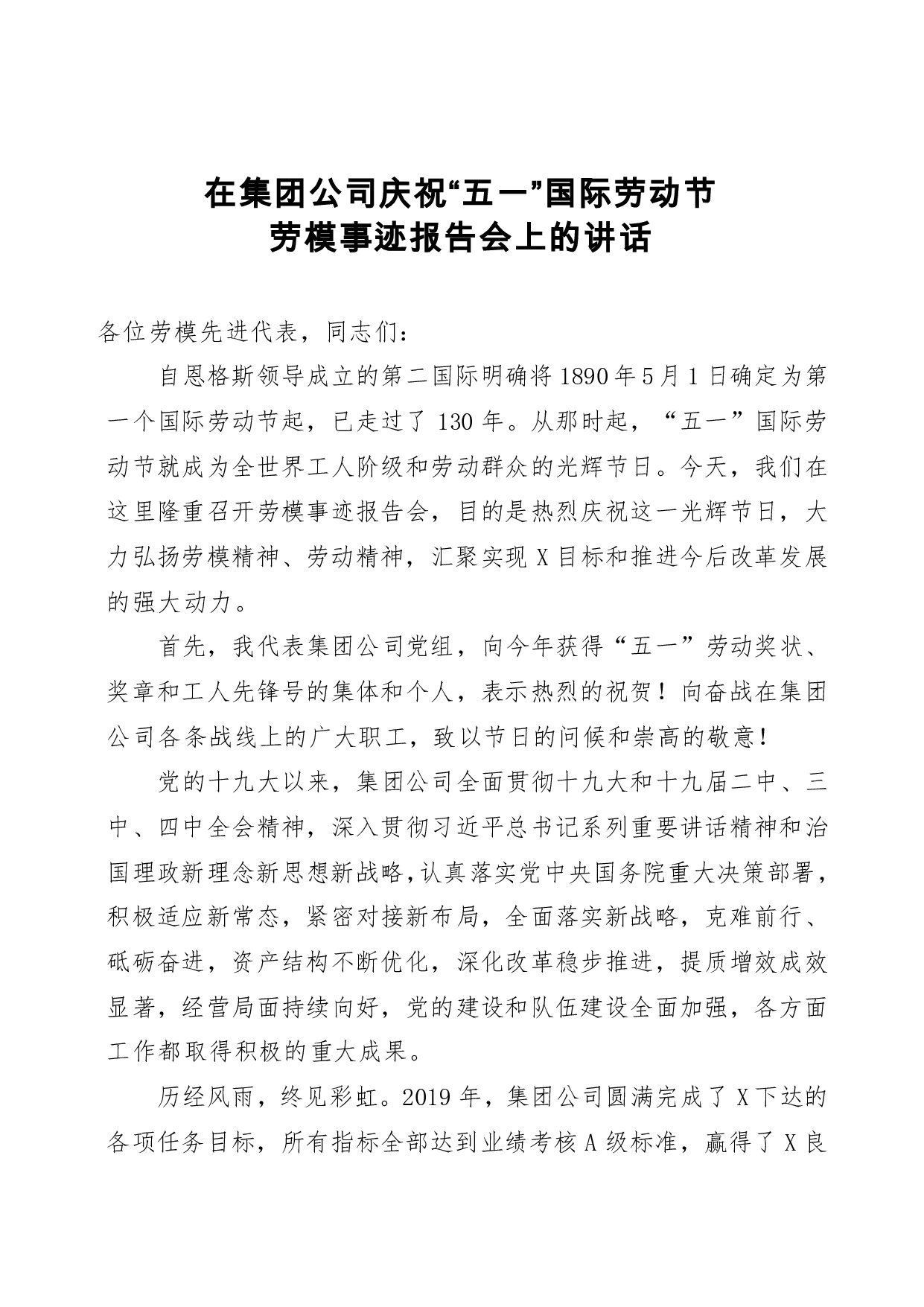 标题:在庆祝五一国际劳动节劳模事迹报告会上的讲话