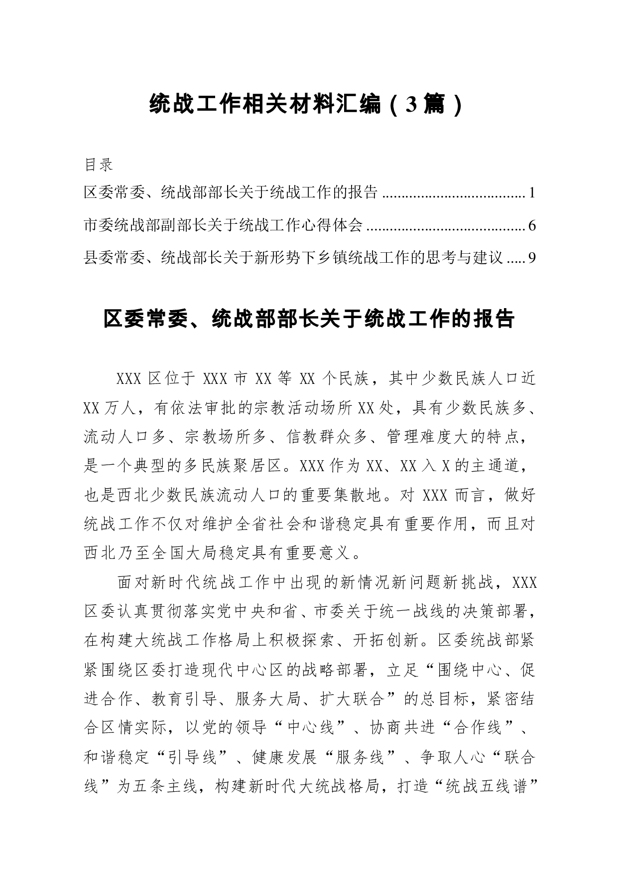 标题:统战工作相关材料汇编3篇