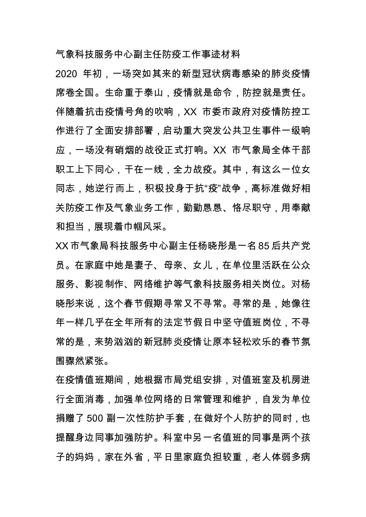 标题:气象科技服务中心副主任防疫工作事迹材料