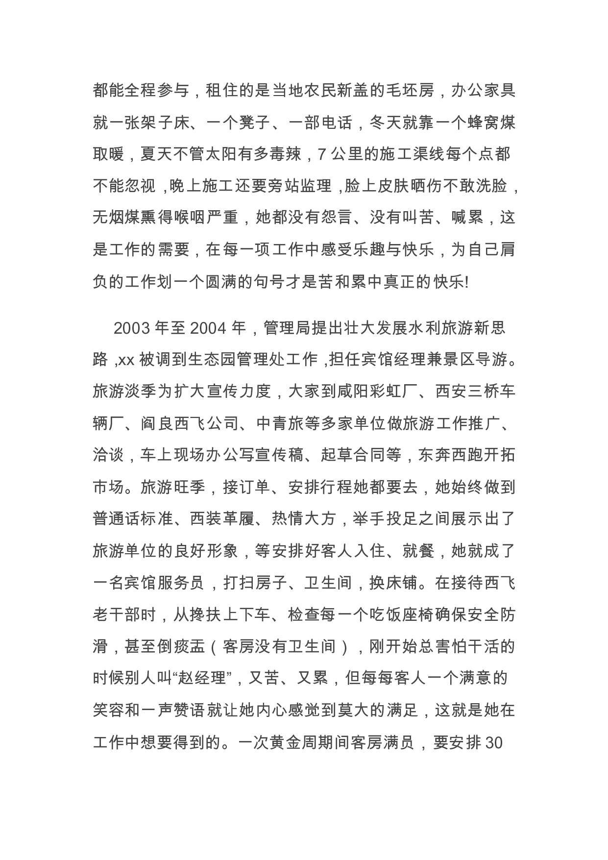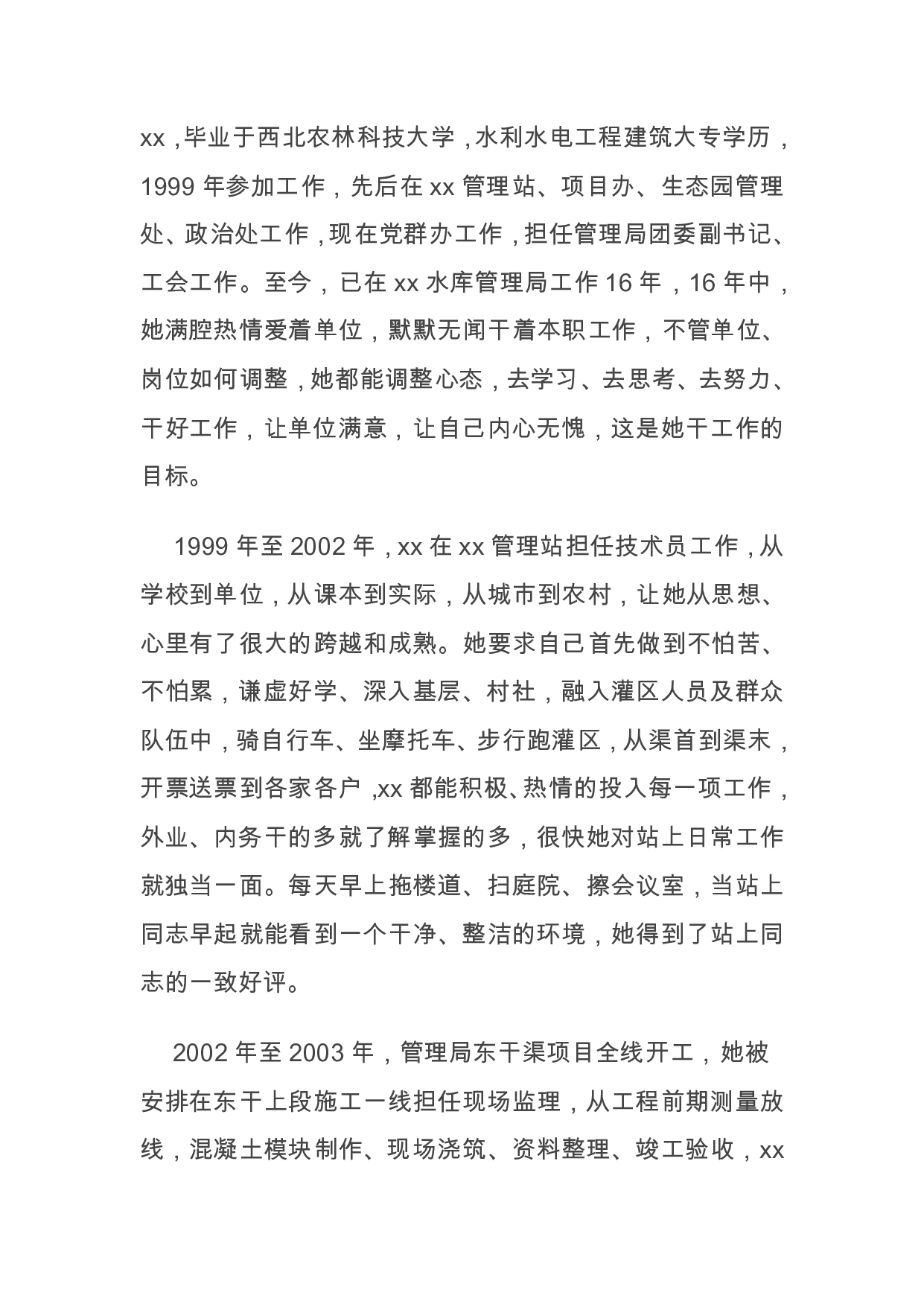 标题:灌溉局团委副书记敬业标兵事迹材料