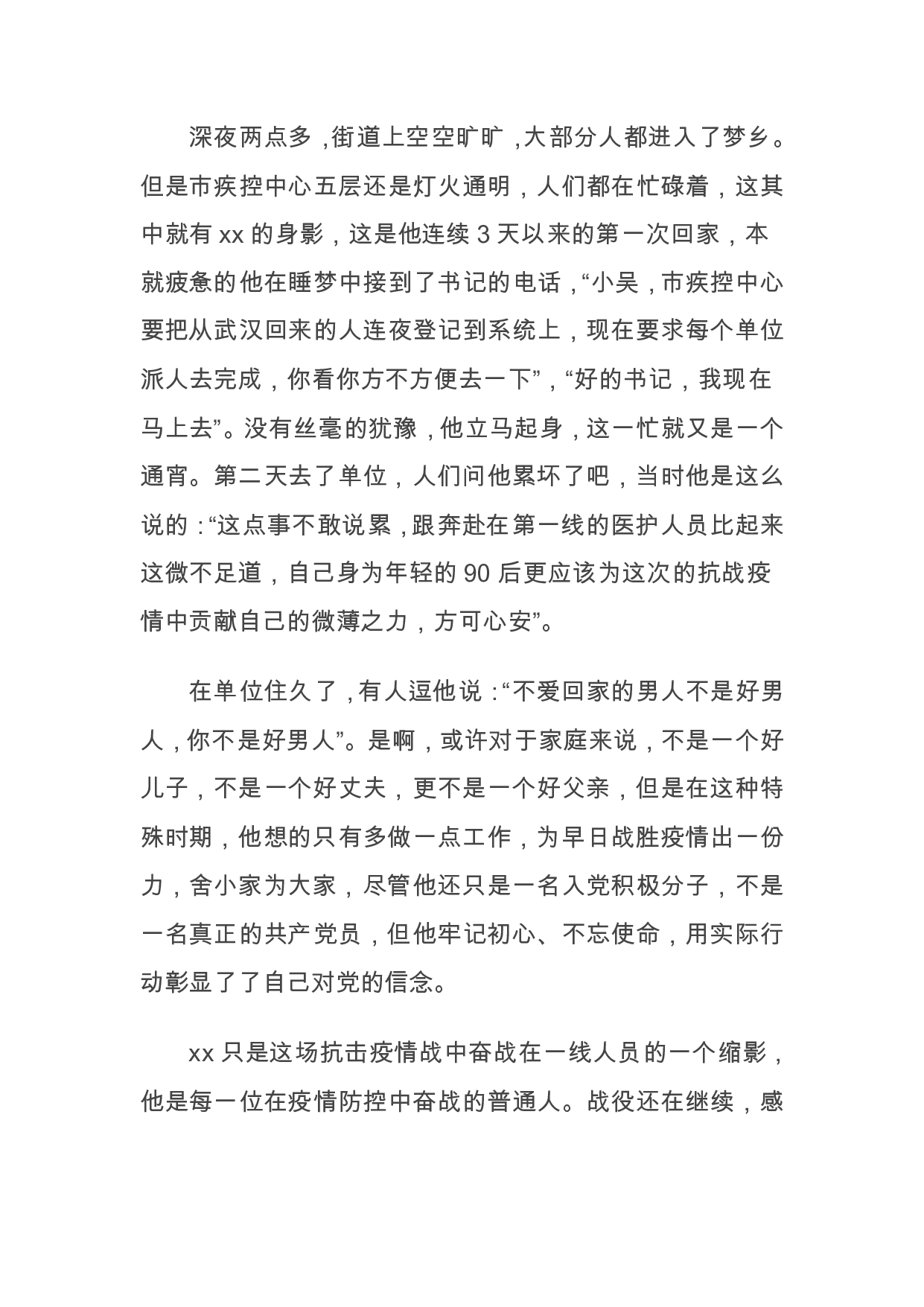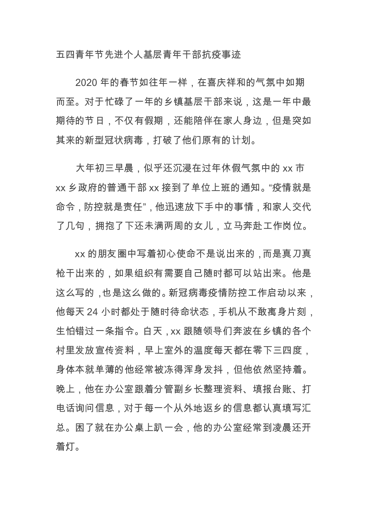 标题:五四青年节先进个人基层青年干部抗疫事迹