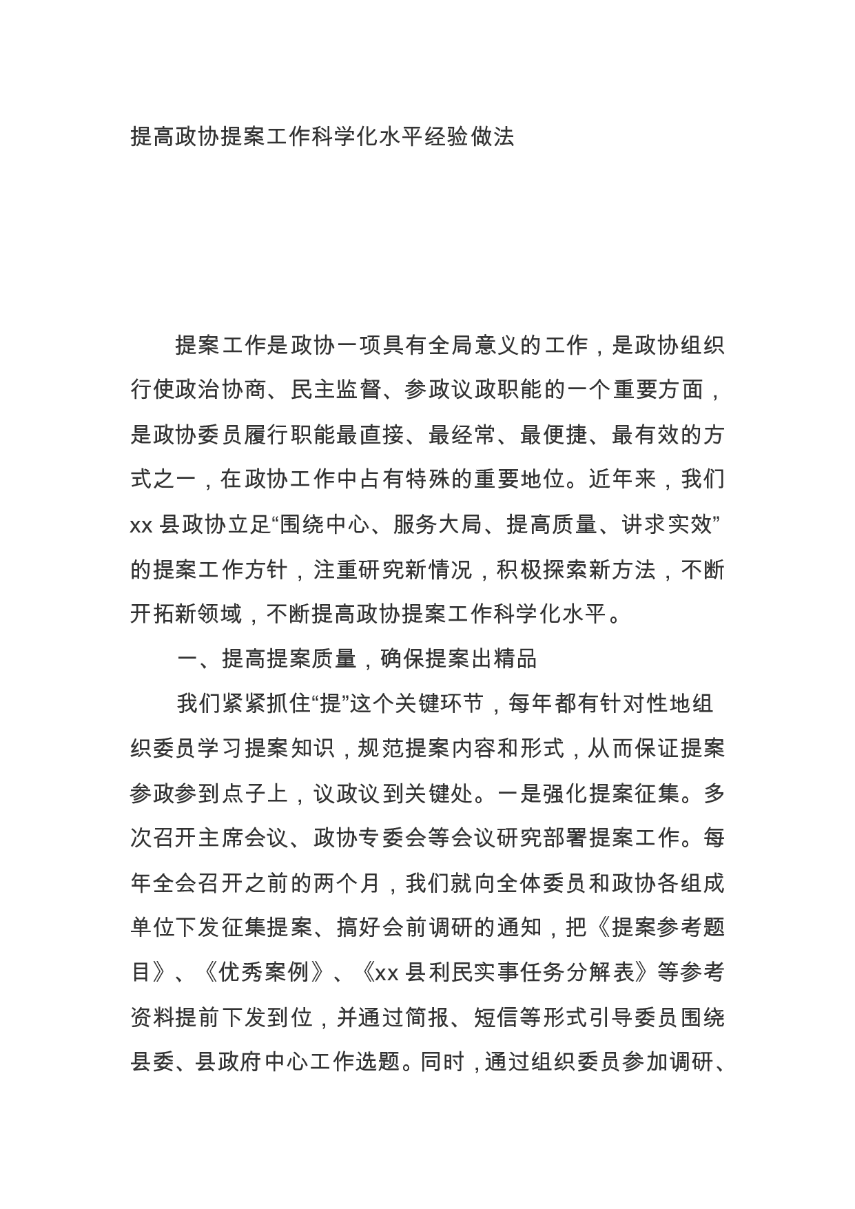 标题:提高政协提案工作科学化水平经验做法
