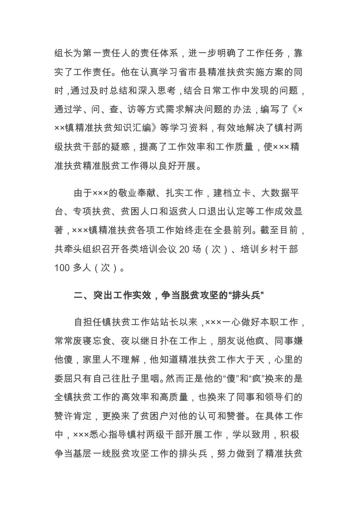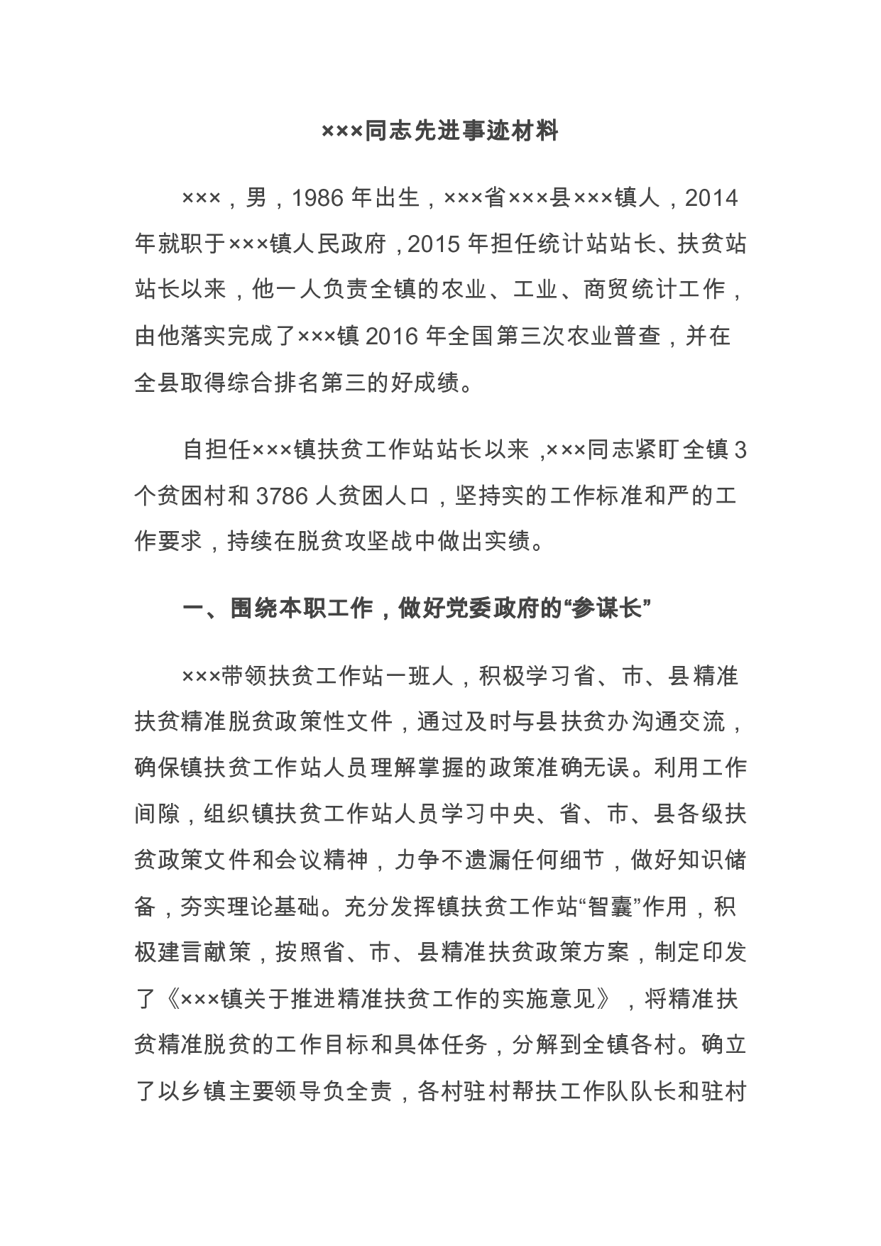 标题:乡镇统计站站长、扶贫站站长先进事迹材料