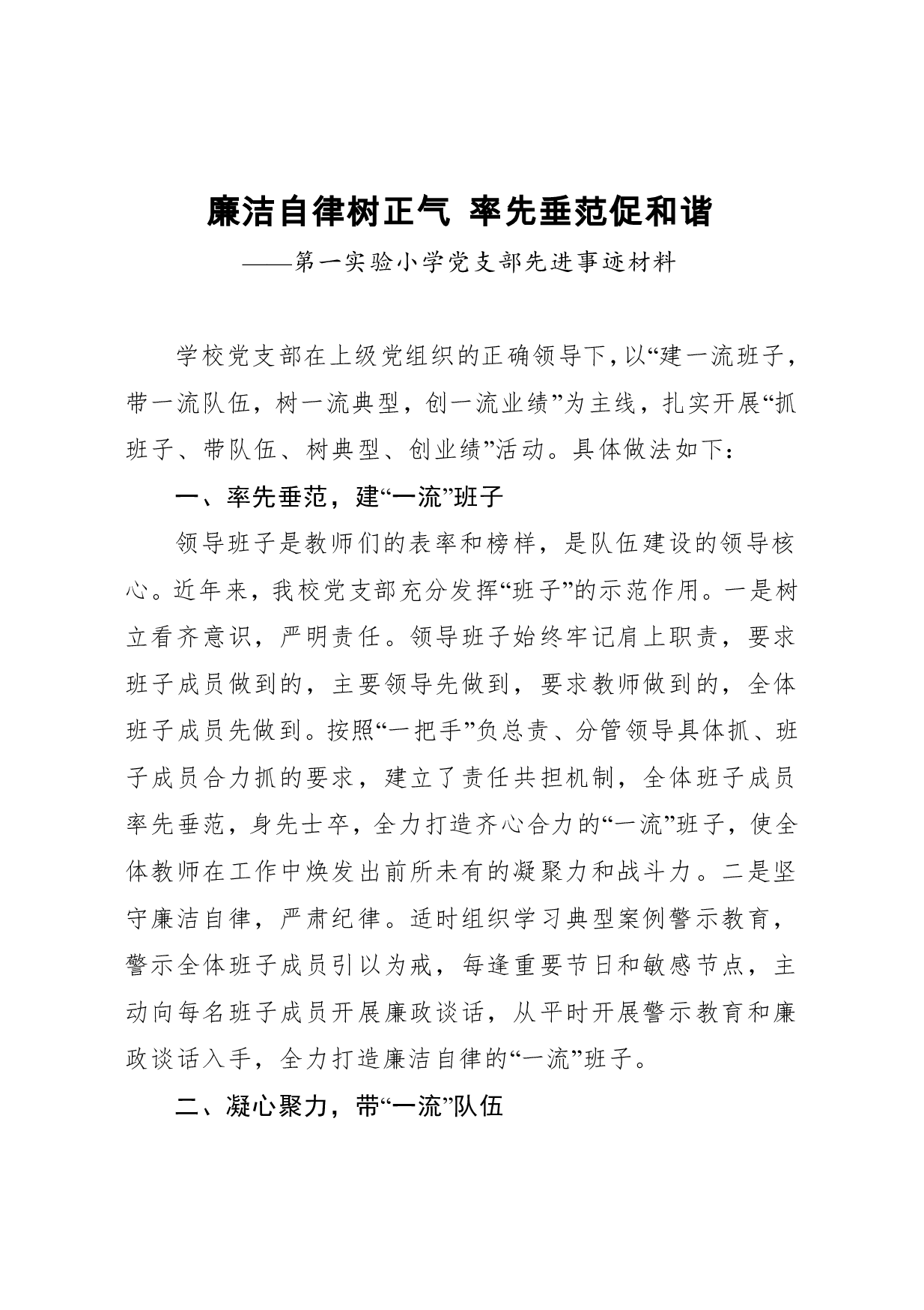 标题:廉洁自律树正气 率先垂范促和谐第一实验小学党支部先进事迹材料