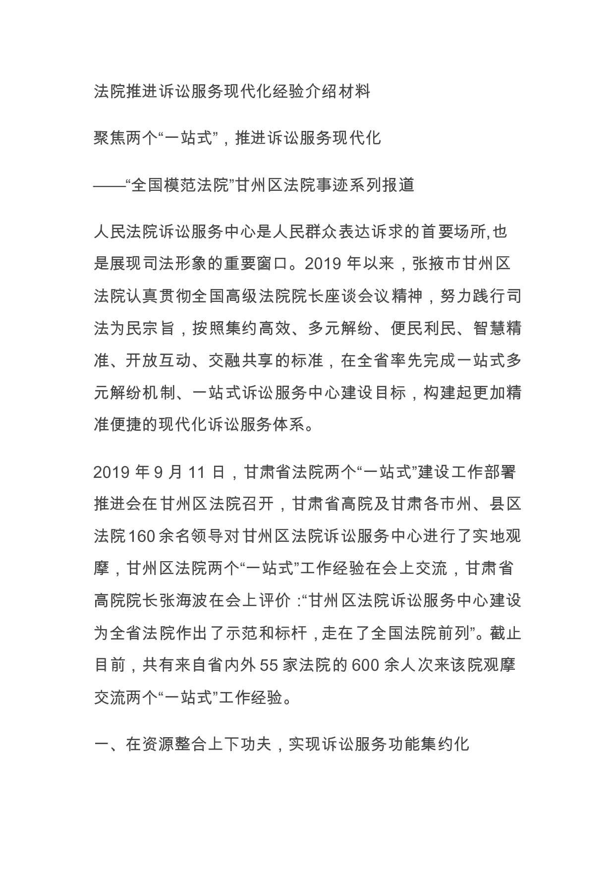 标题:法院推进诉讼服务现代化经验介绍材料