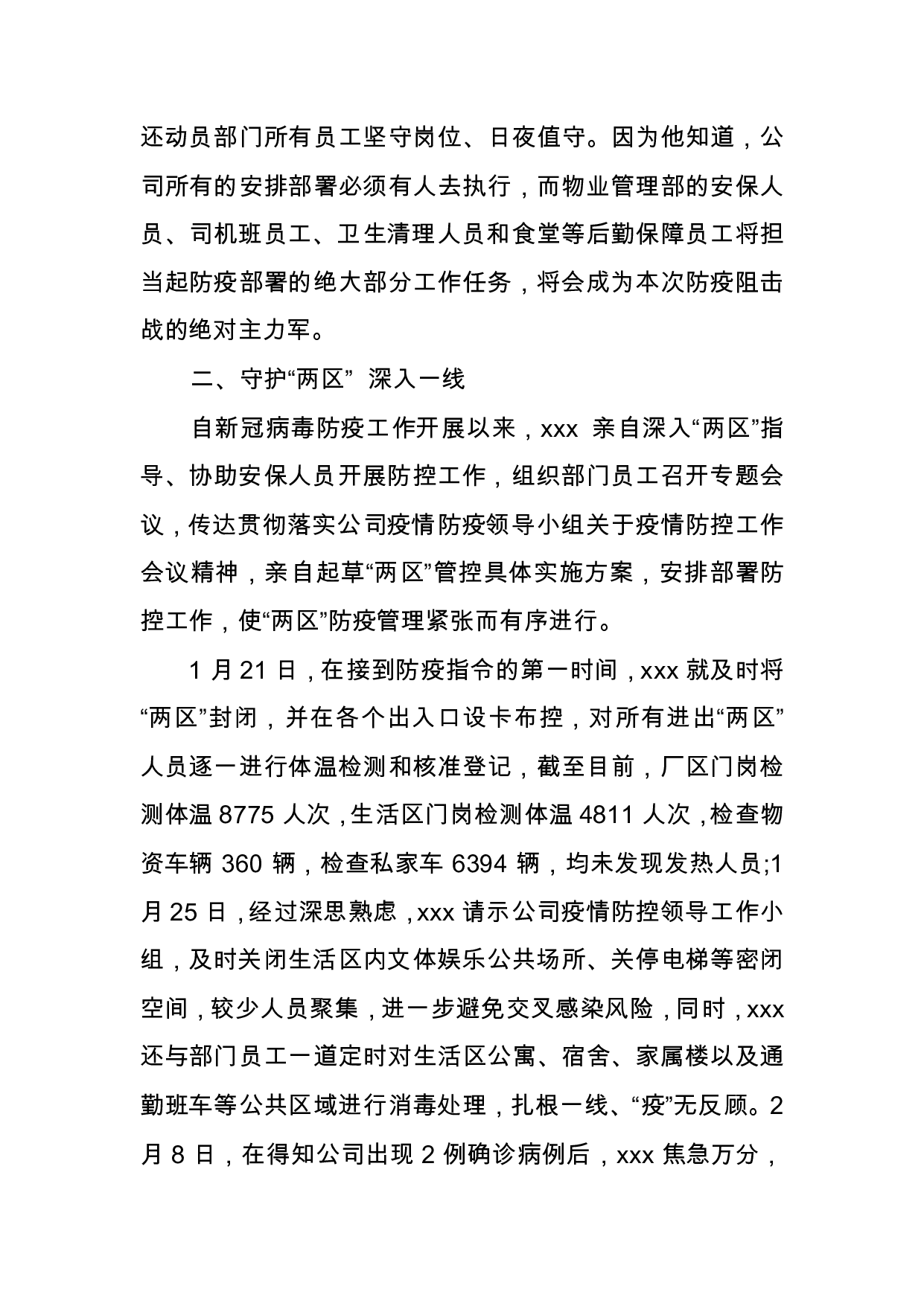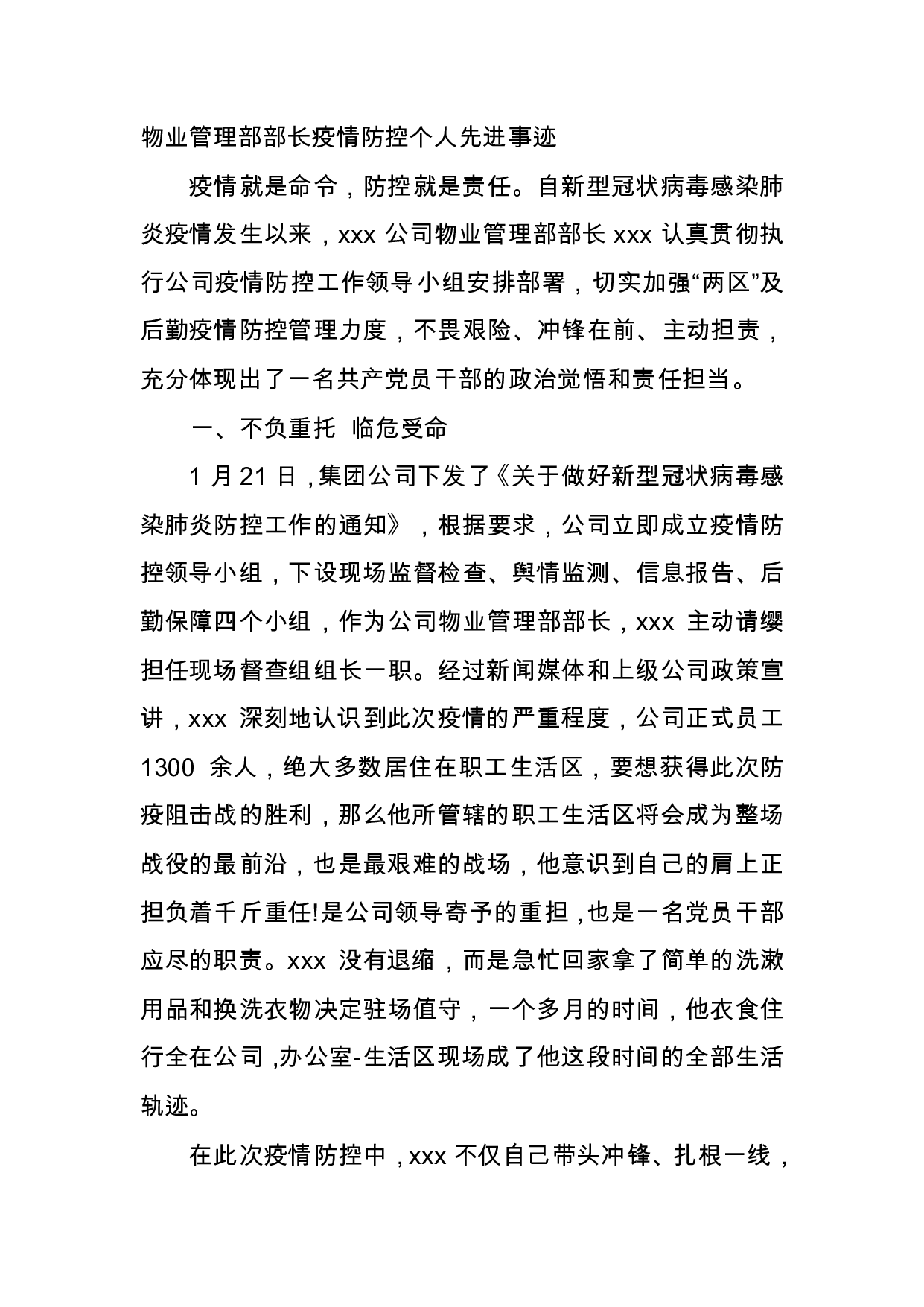 标题:物业管理部部长疫情防控个人先进事迹