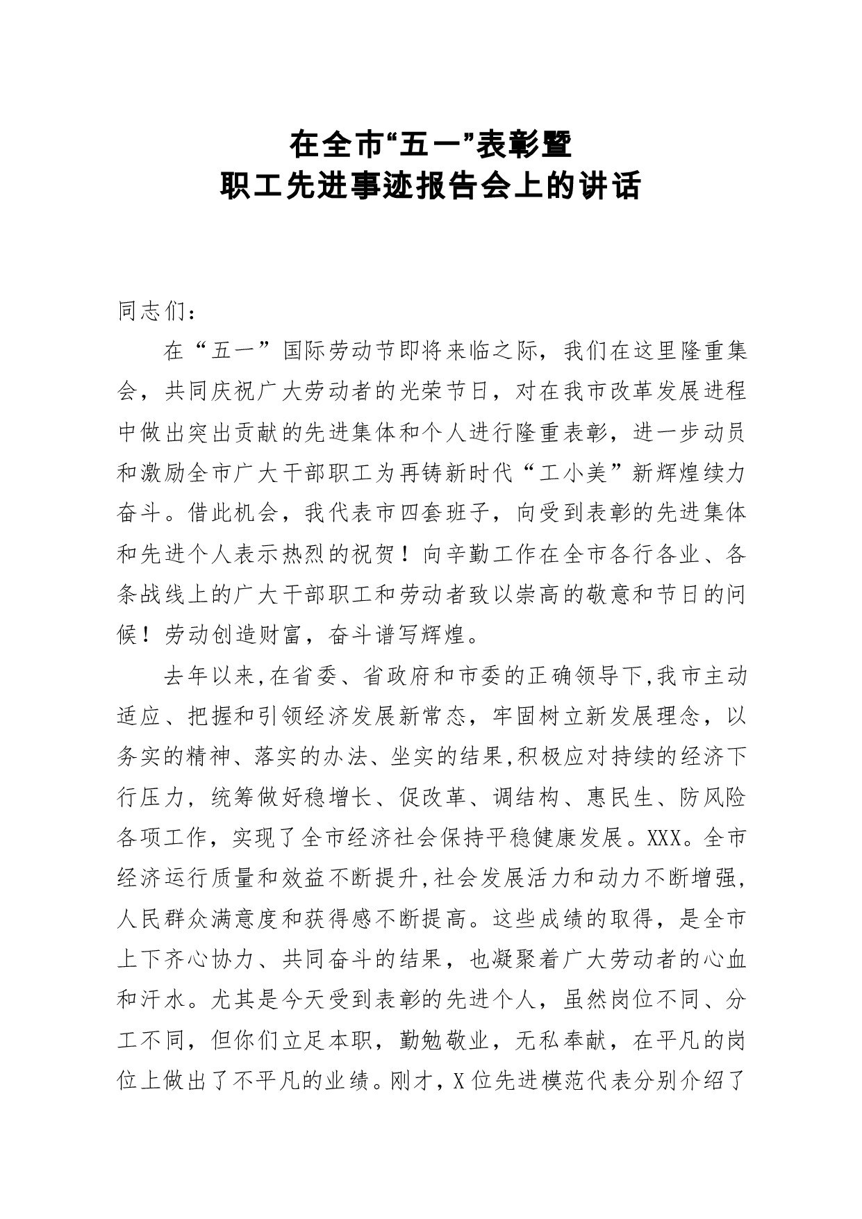 标题:笔友分享在全市五一表彰暨职工先进事迹报告会上的讲话