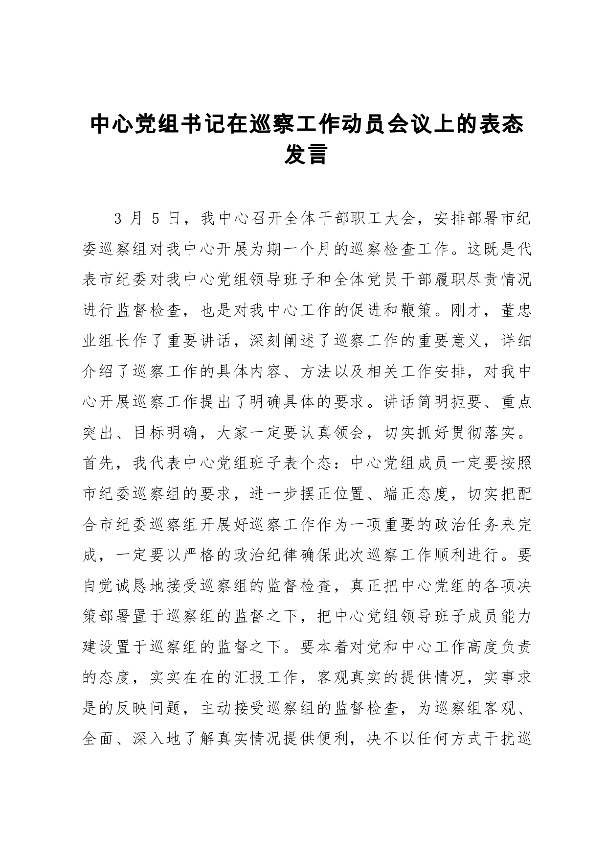 标题:中心党组书记在巡察工作动员会议上的表态发言