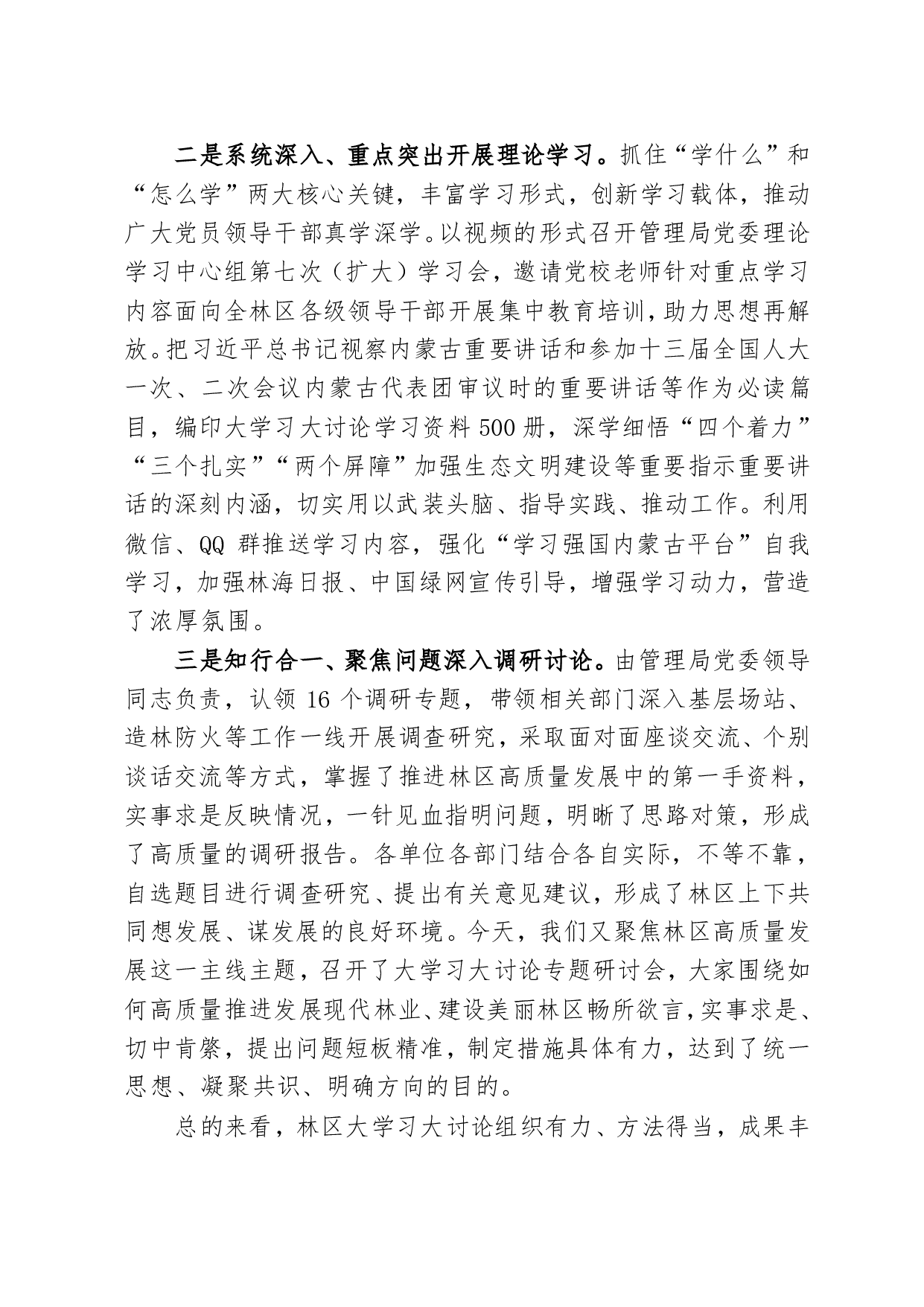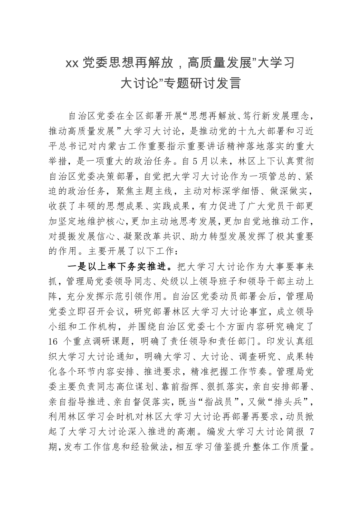 标题:党委思想再解放,高质量发展”大学习大讨论”专题研讨发言
