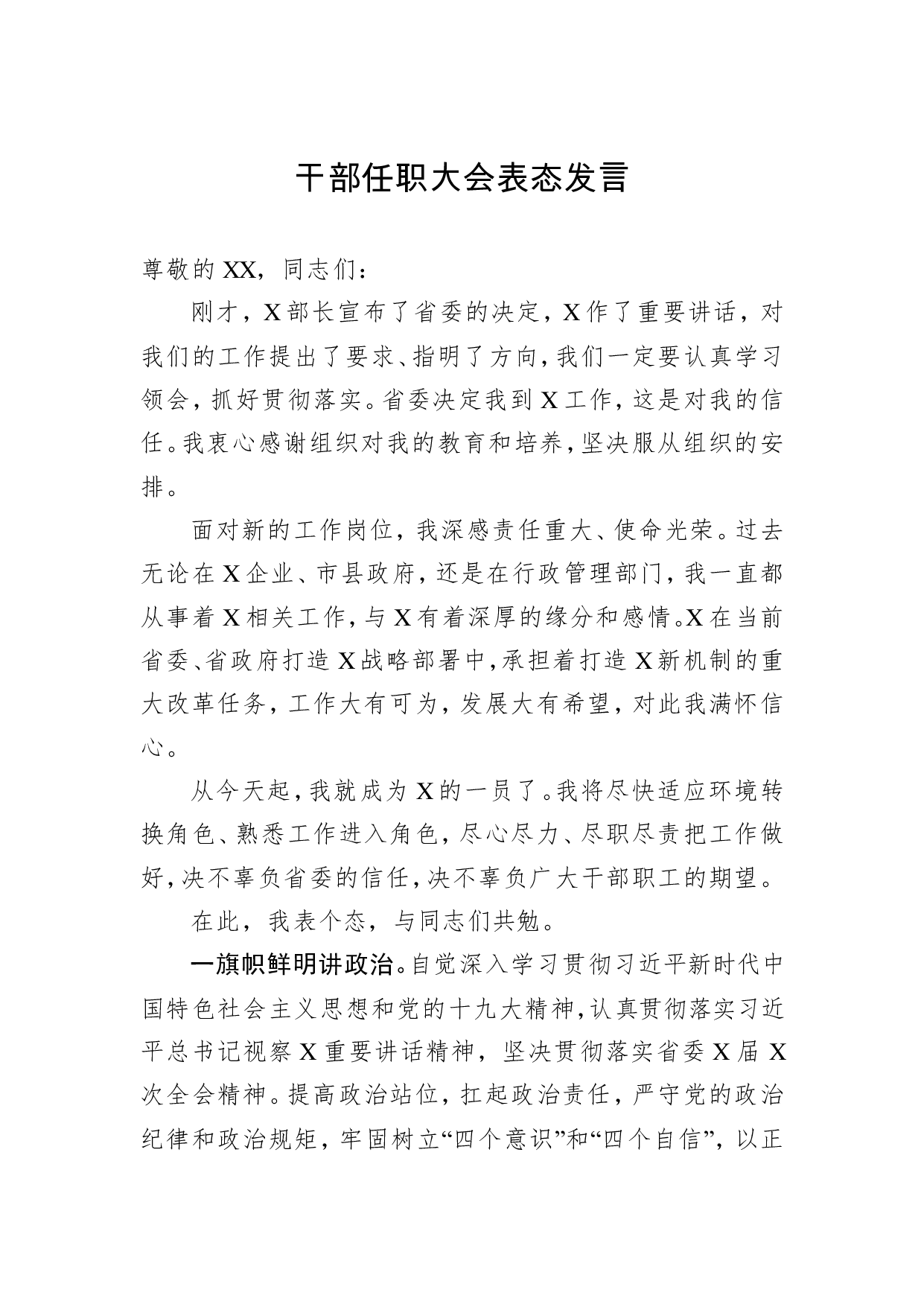 标题:干部任职大会表态发言