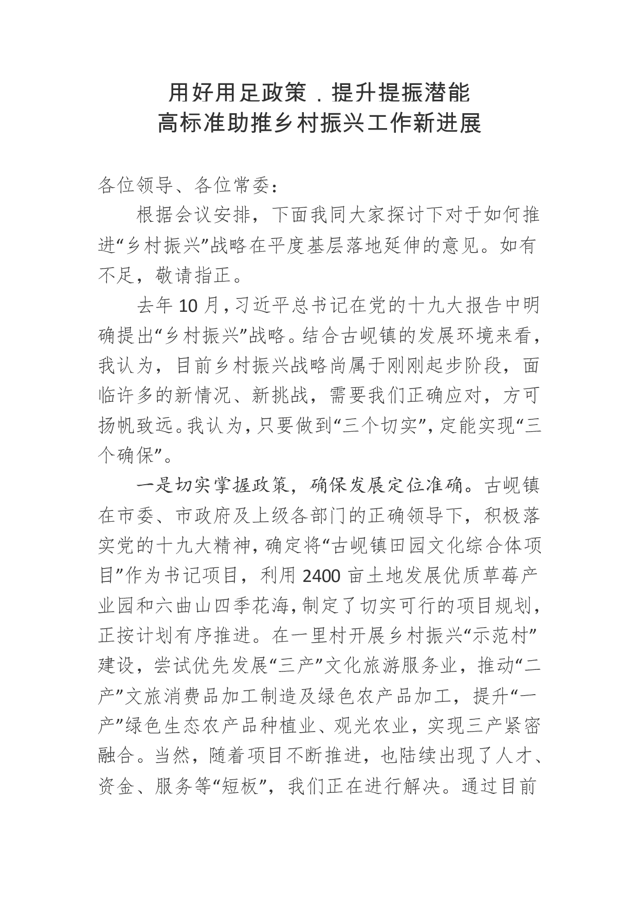 标题:政协委员关于推进“乡村振兴”战略在基层落地延伸的发言材料