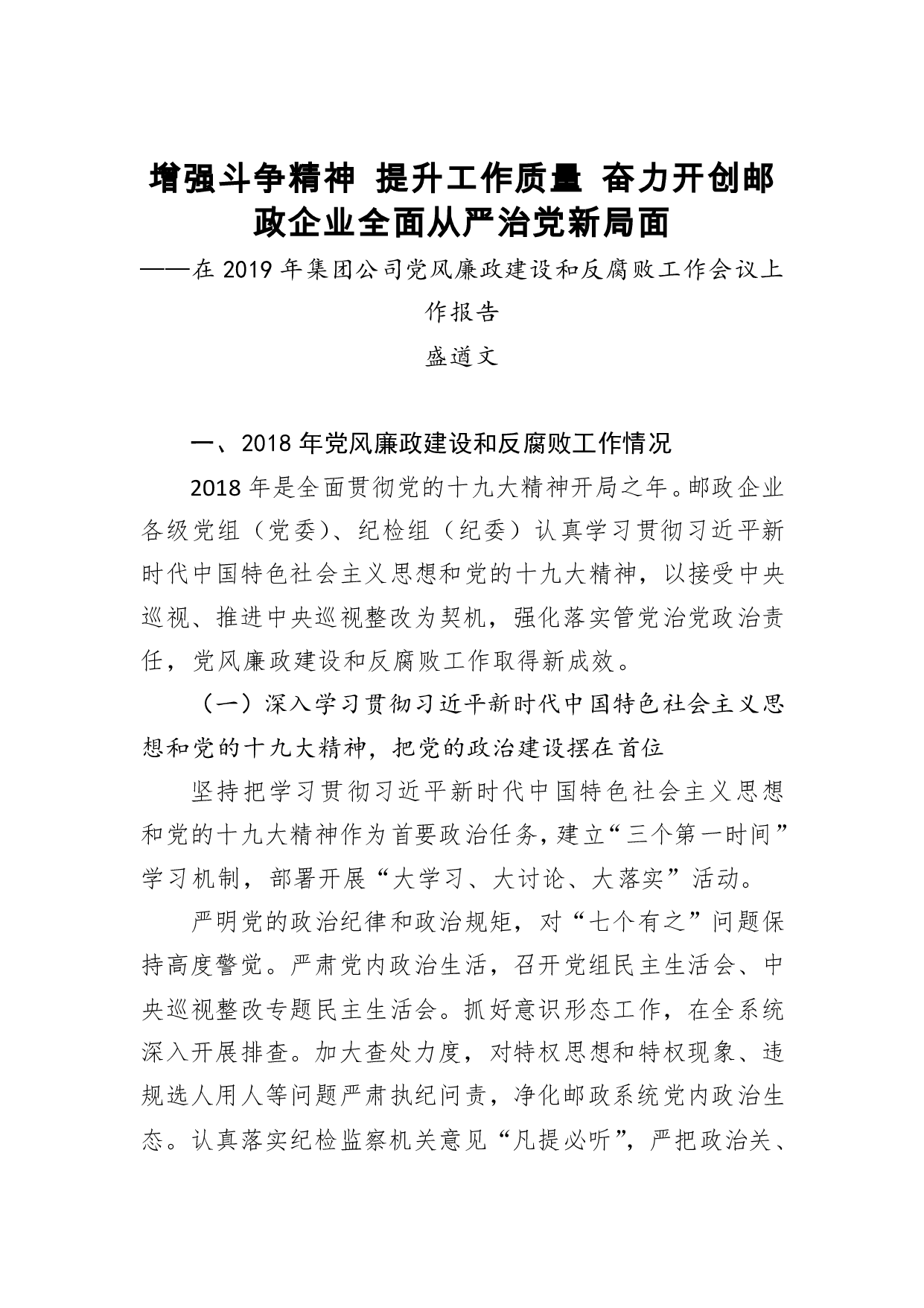 标题:盛遒文:增强斗争精神 提升工作质量 奋力开创邮政企业全面从严治党新局面