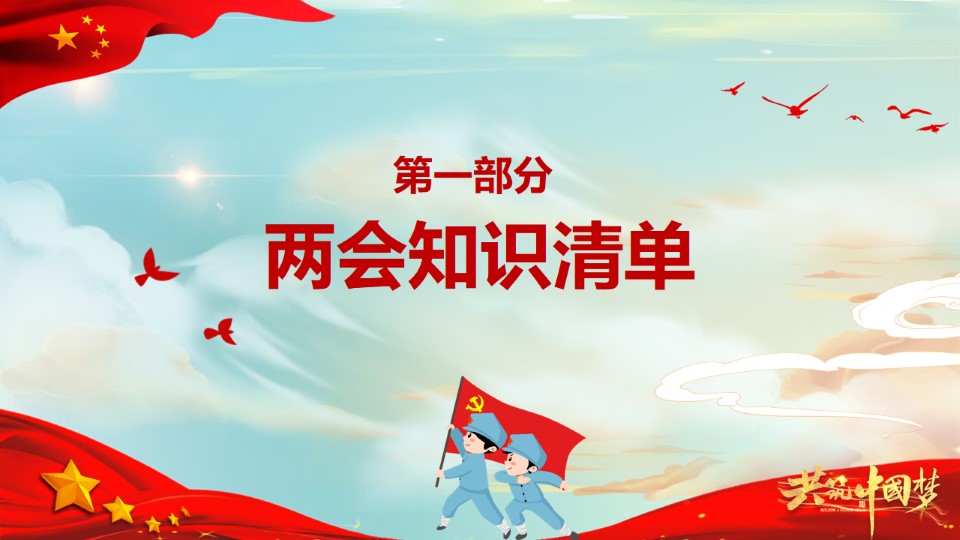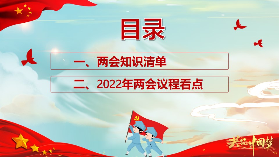 标题:童心看两会PPT红色卡通2022两会精神进校园中小学生两会知识帖主题班会课件