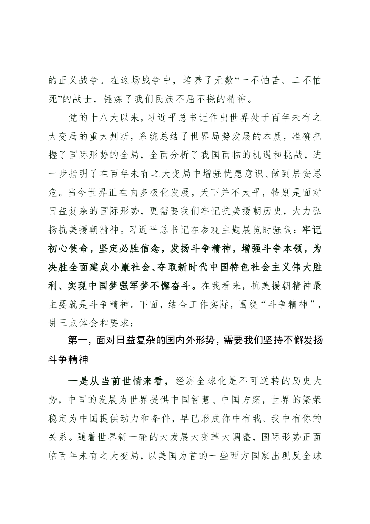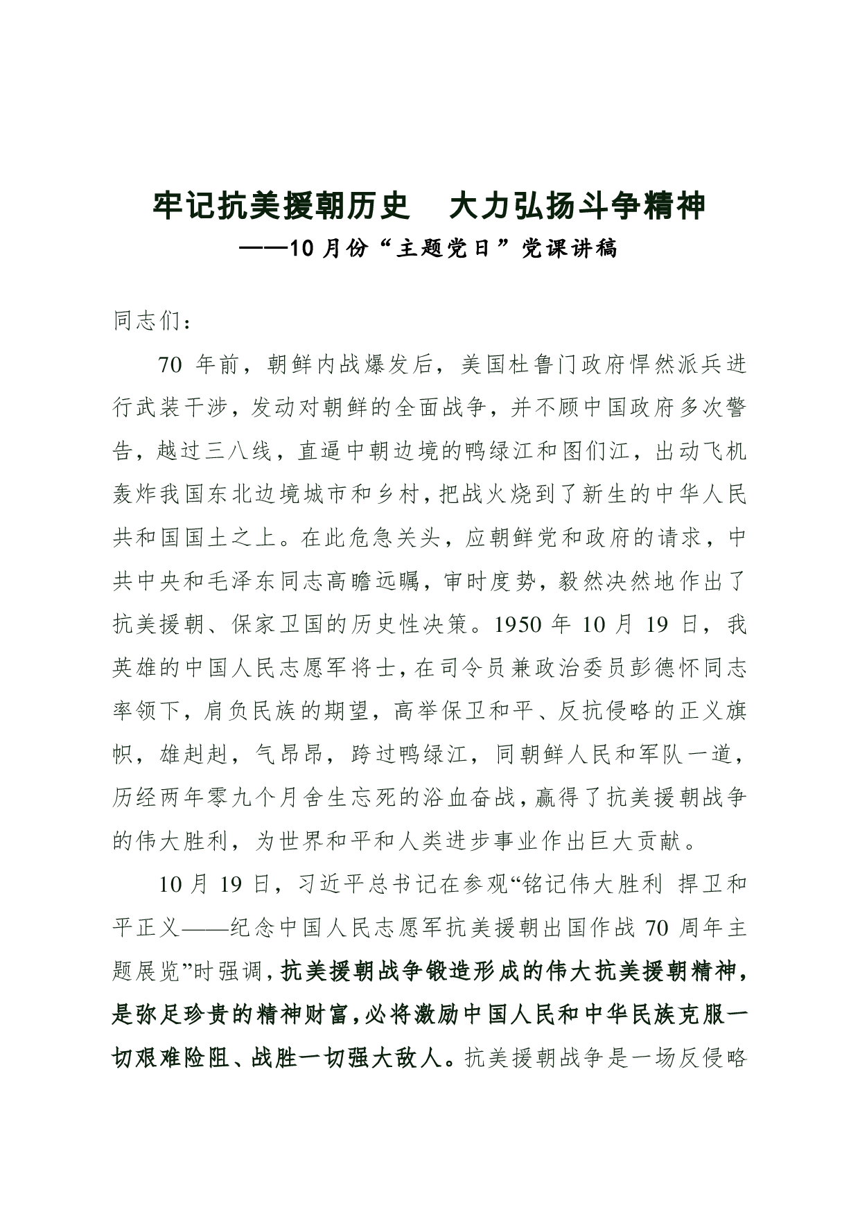 标题:牢记抗美援朝历史 大力弘扬斗争精神