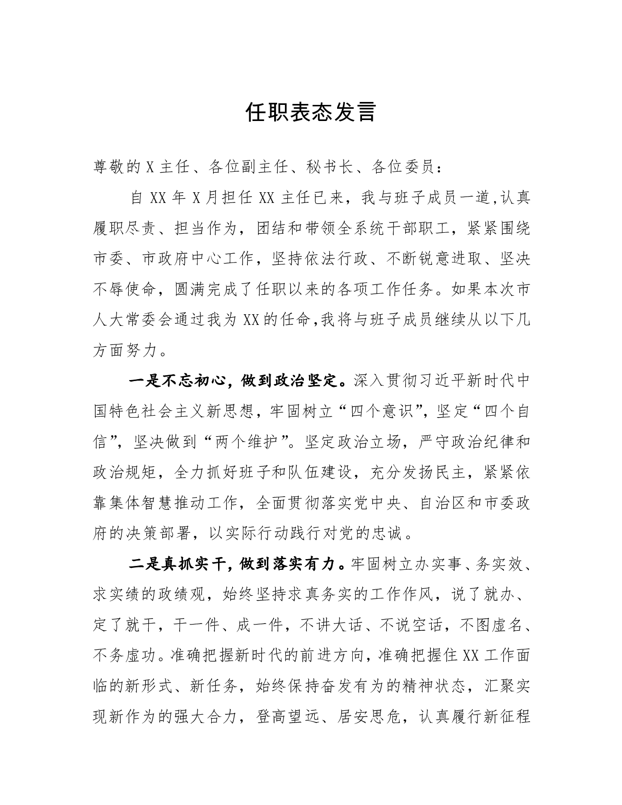 标题:住建局局长任职表态发言