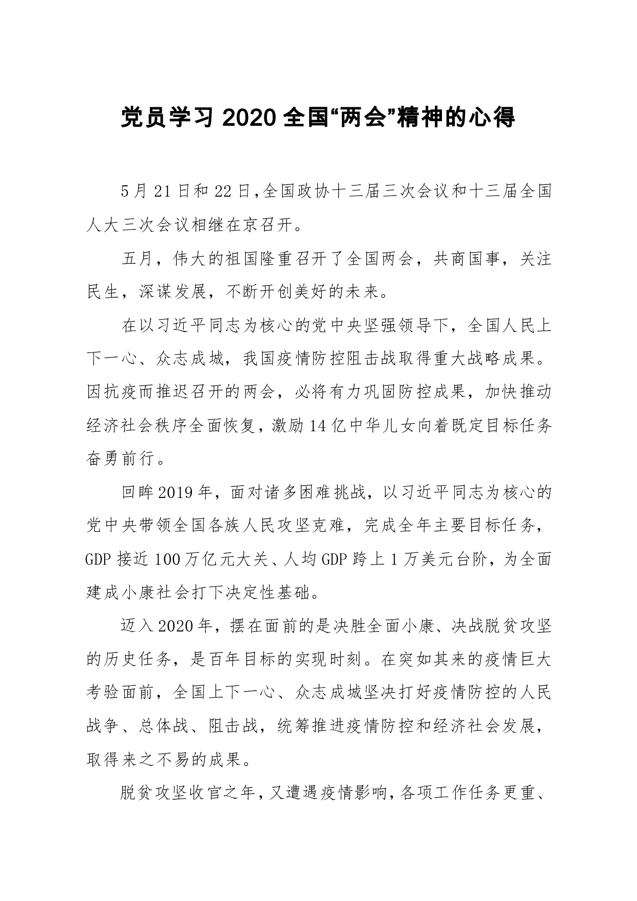 标题:3篇学习2020全国两会精神的心得