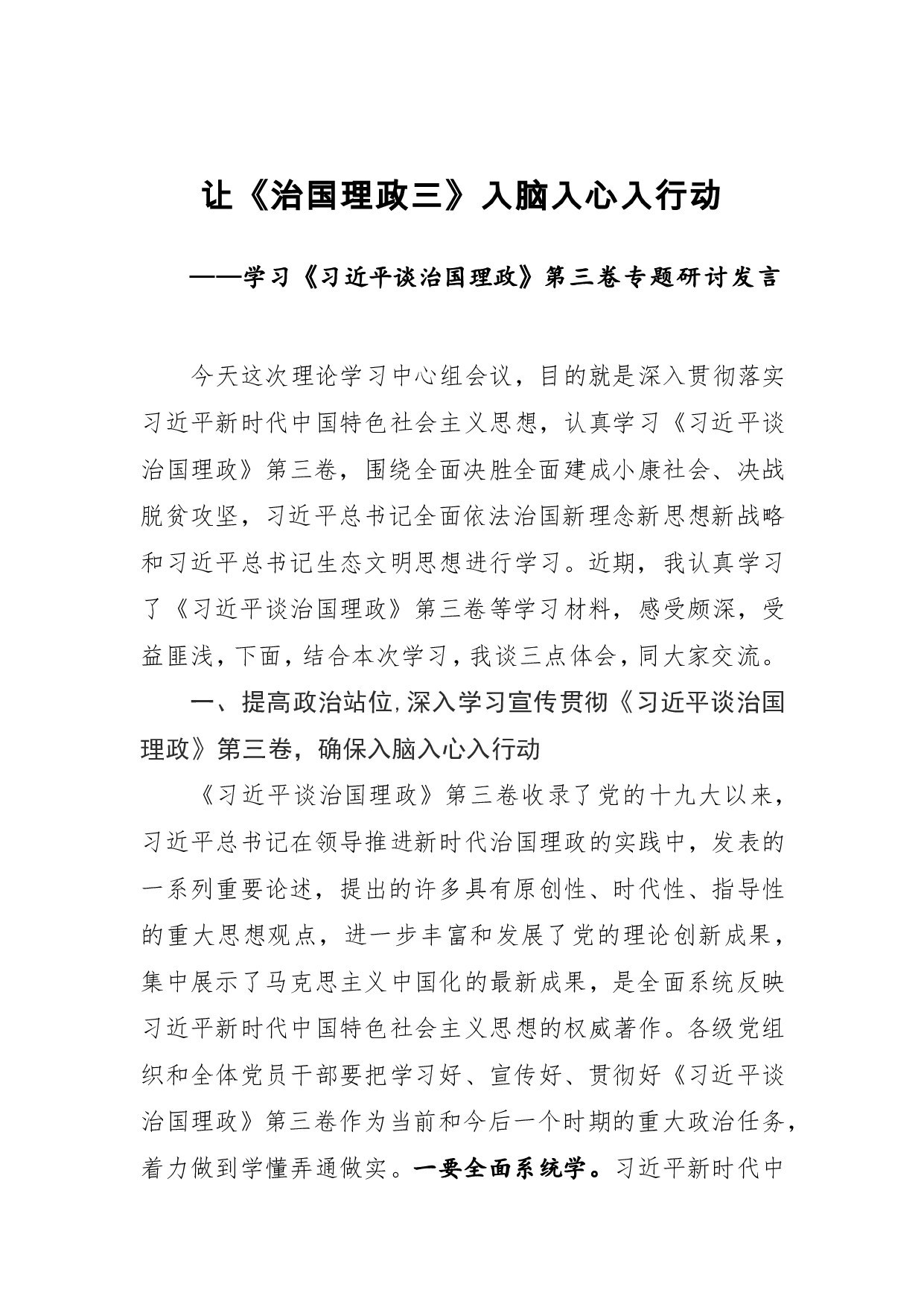 标题:治国理论第三卷研讨发言3篇
