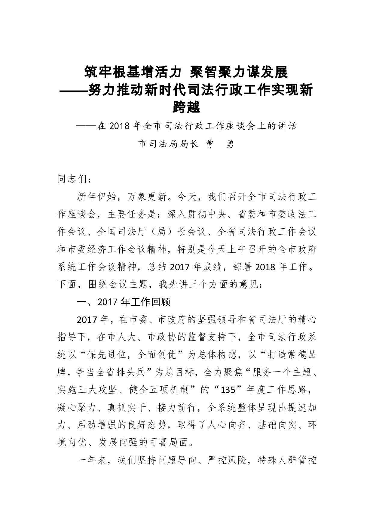 标题:曾勇:筑牢根基增活力,聚智聚力谋发展——努力推动新时代司法行政工作实现新跨越