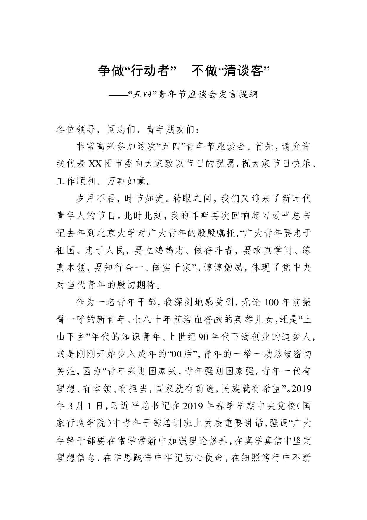 标题:五四青年节座谈会发言提纲
