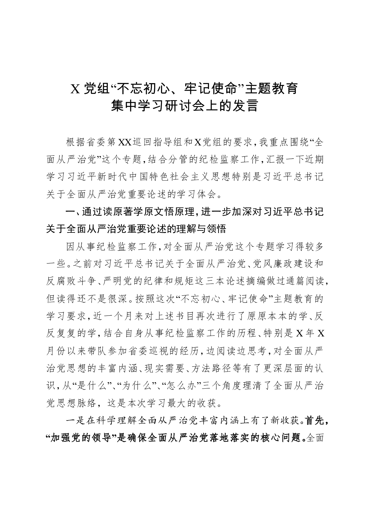标题:省直机关不忘初心牢记使命阶段性集中学习研讨发言材料