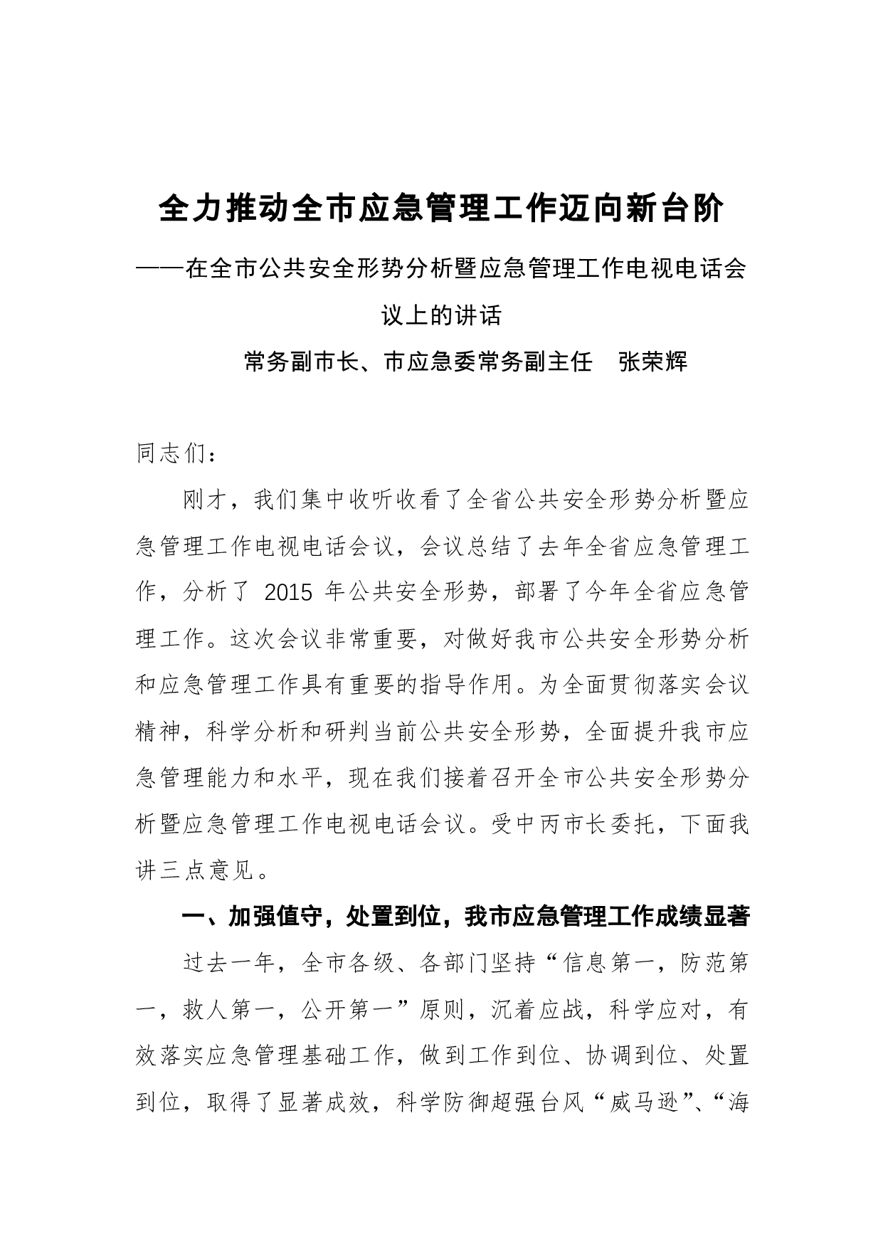标题:张荣辉:全力推动全市应急管理工作迈向新台阶