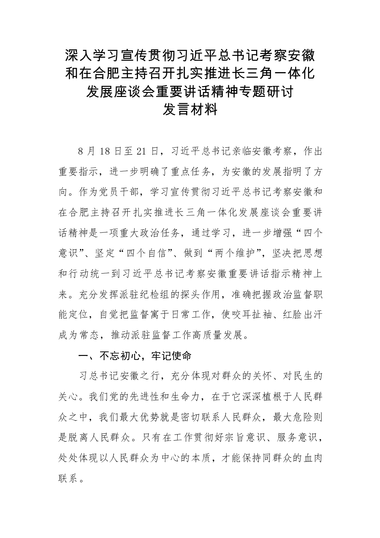 标题:深入学习宣传贯彻习近平总书记考察安徽和在合肥主持召开扎实推进长三角一体化发展座谈会