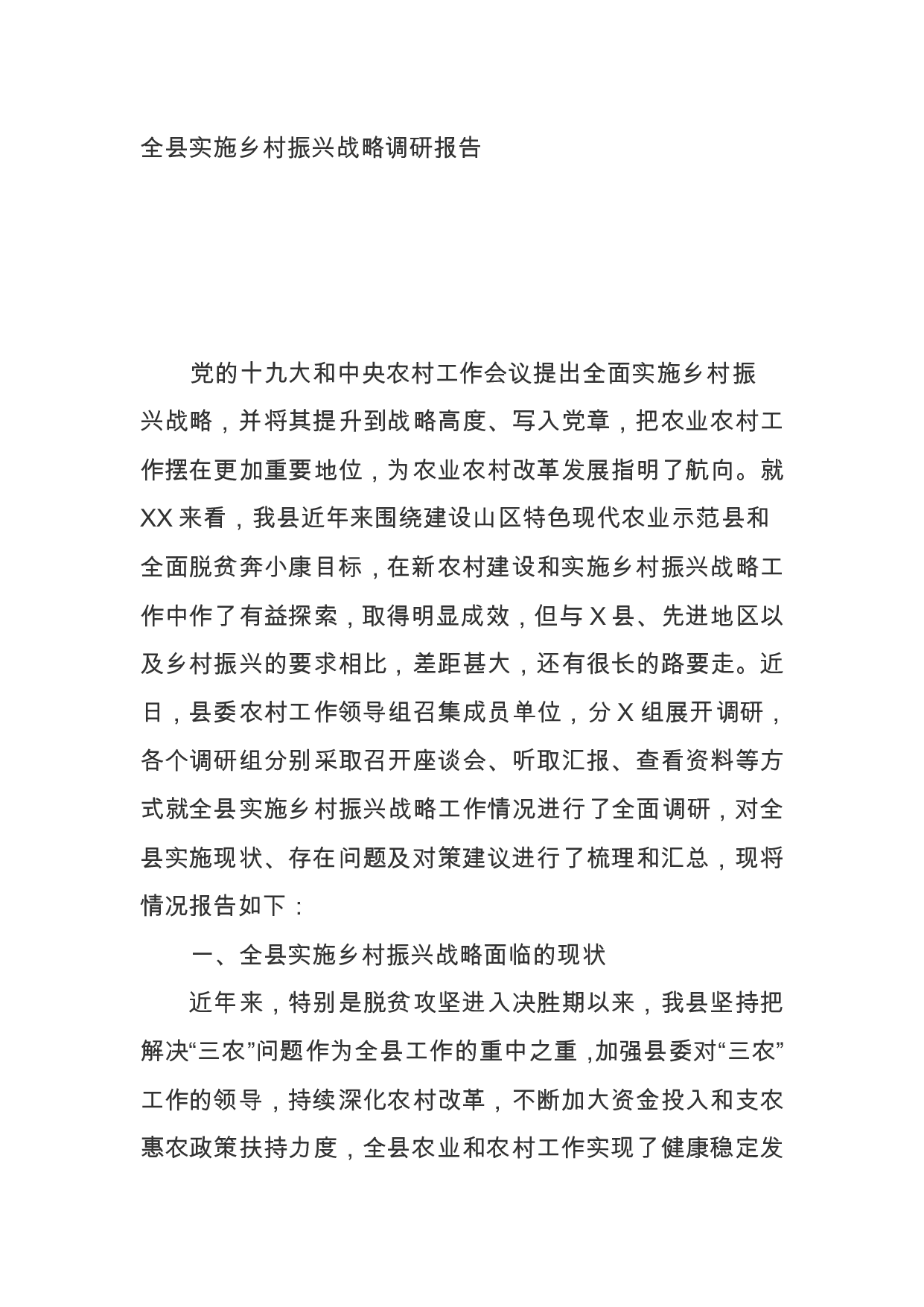 标题:全县实施乡村振兴战略调研报告