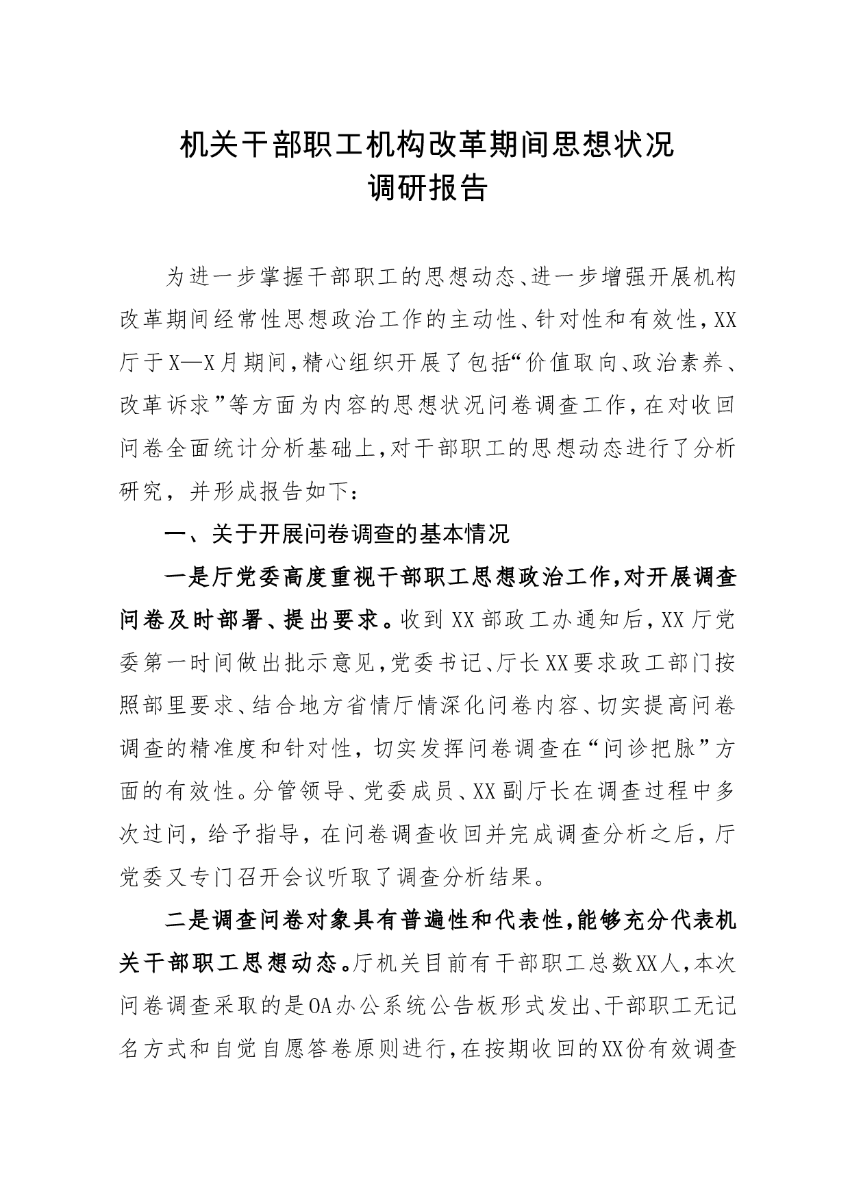 标题:机关干部职工机构改革期间思想状况调研报告