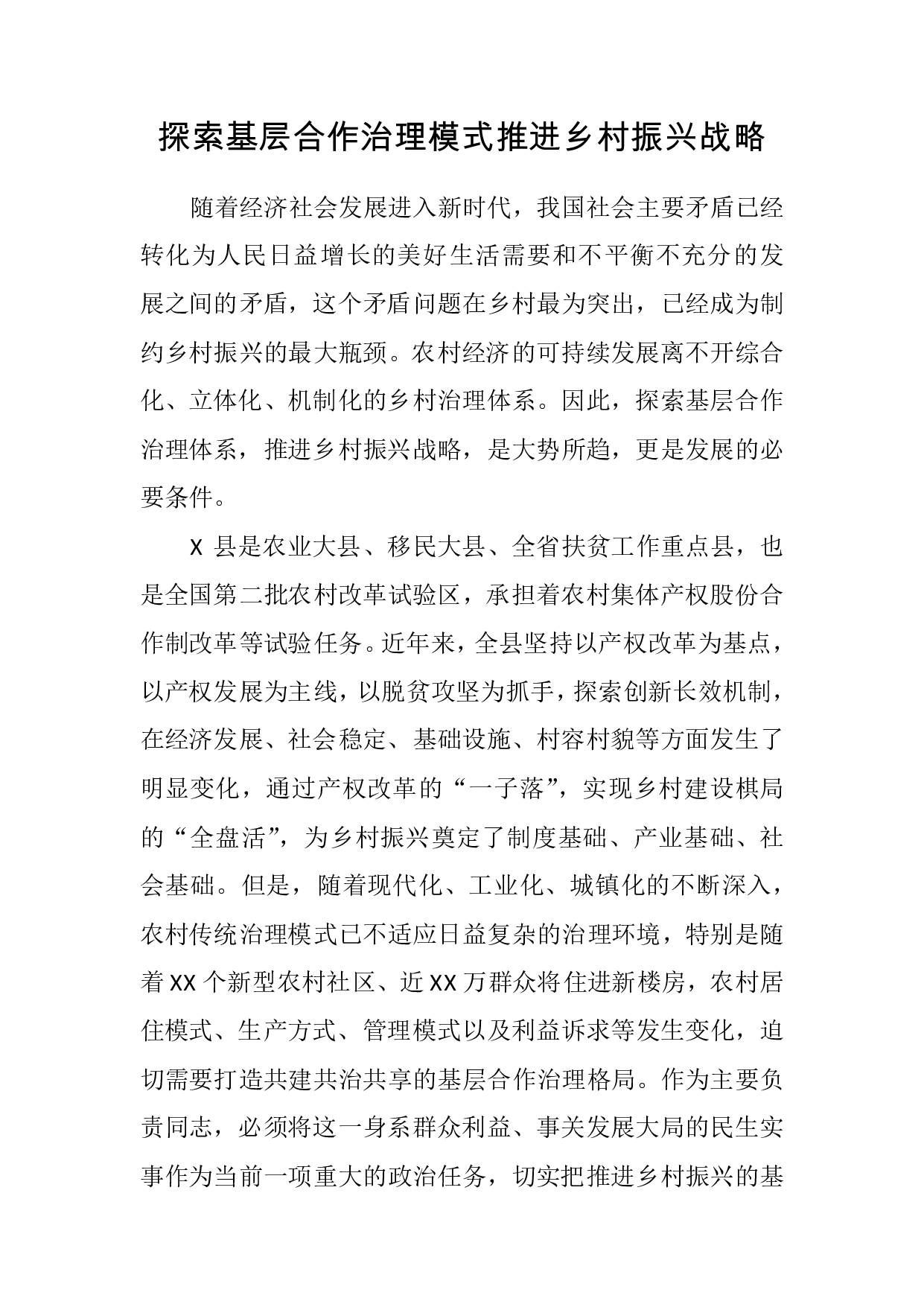 标题:探索基层合作治理模式推进乡村振兴战略