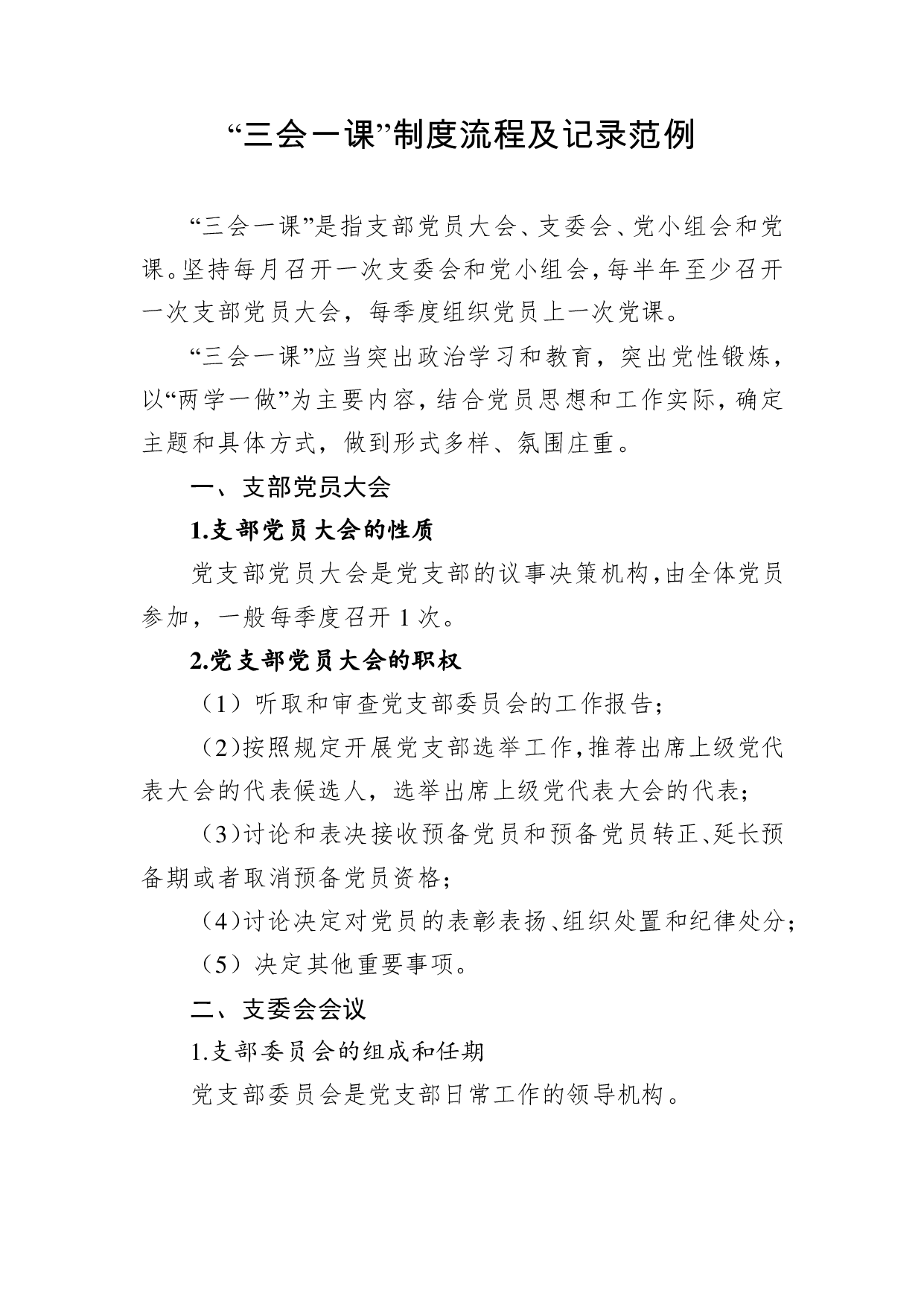 标题:【党课范文】三会一课制度流程及记录范例