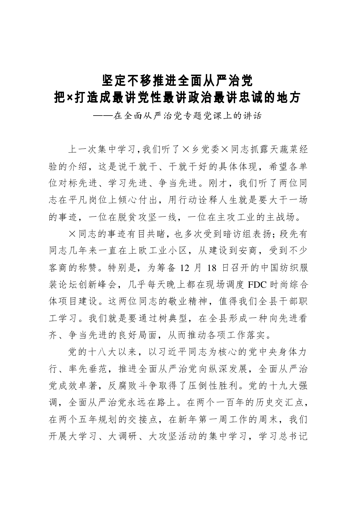 标题:【党课范文】坚定不移推进全面从严治党把×打造成最讲党性最讲政治最讲忠诚的地方在全面从