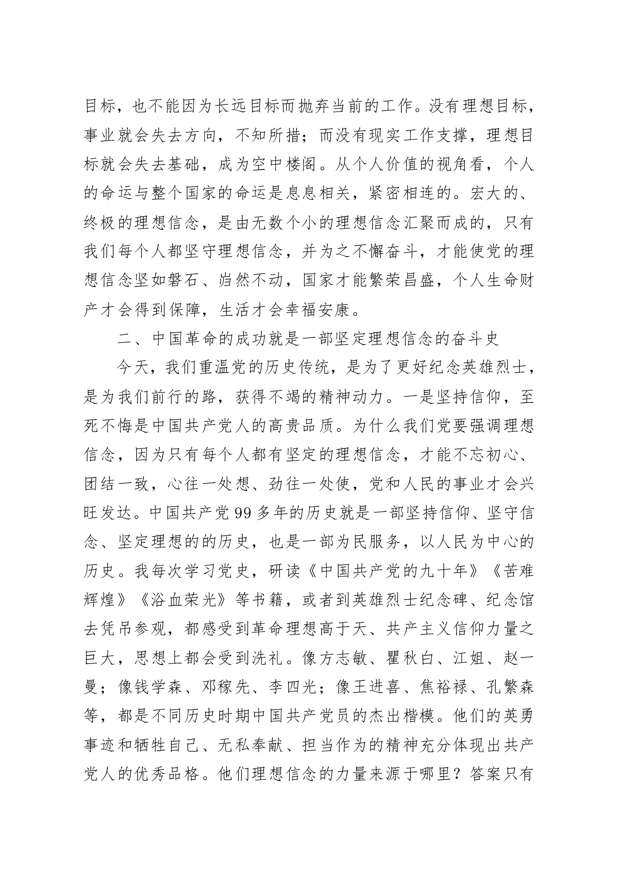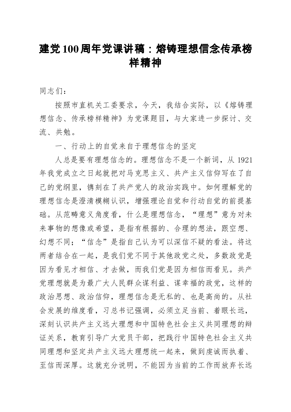 标题:建党100周年党课讲稿熔铸理想信念传承榜样精神